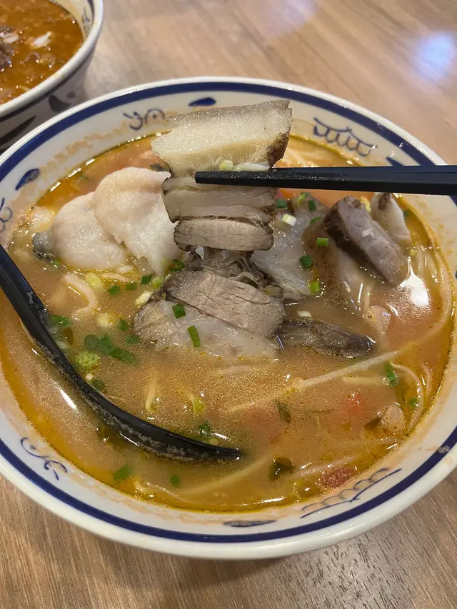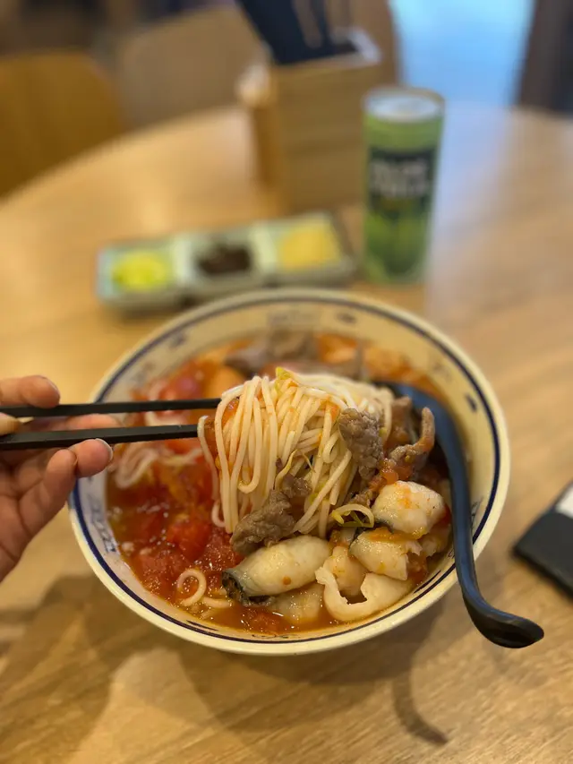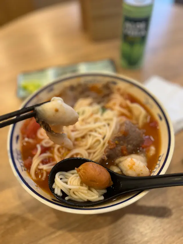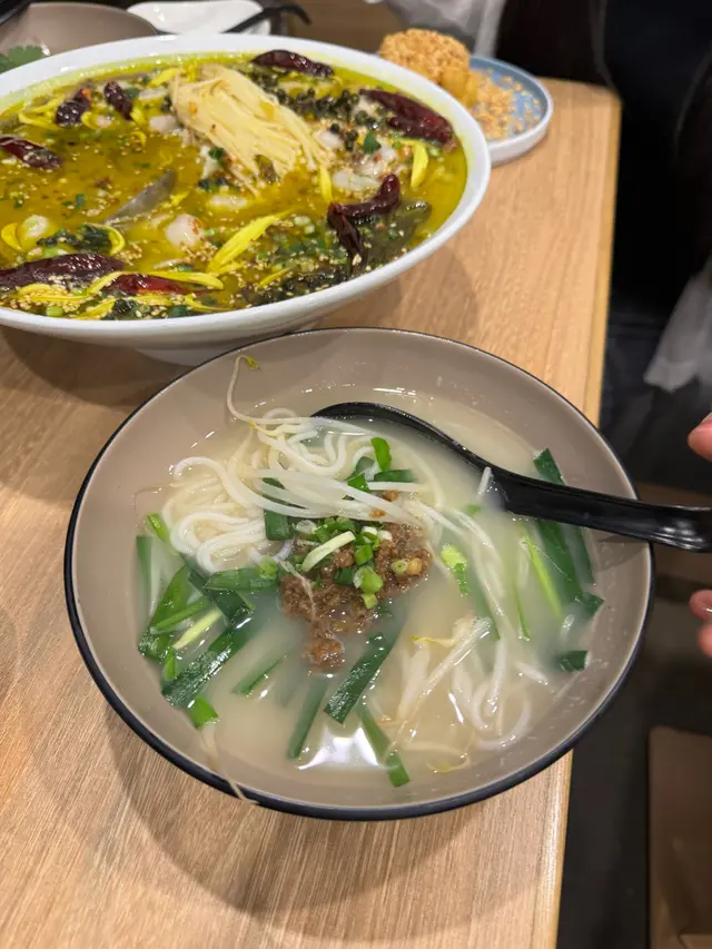 Lunch time和同事來了這家餐廳,環境雖然不大,但卻充滿了溫馨和親切的氛圍。餐廳的裝潢簡潔而舒適,給人一種家的感覺👍 啖啖担担麵的手工麵條彈牙有勁,配上香辣的担担醬,讓人嘴巴一辣一麻,即刻引發味蕾的狂歡!這碗麵還加入了各種配料增添了口感和層次,同事吃的這碗也太香了😆我點了酸菜湯魚片牛肉米線。這碗湯的酸菜味道濃郁,鮮嫩的魚片和嫩滑的牛肉搭配在一起相得益彰😍 我想要少吃一些麵,也可選擇少米,再加了一罐韓國青檸七,非常解熱!還有一道小食嬷嬷土豆絲,土豆切成絲狀配上調味料,涼拌後保持了土豆的鮮脆口感和獨特的風味,既清爽又開胃🤤查看更多