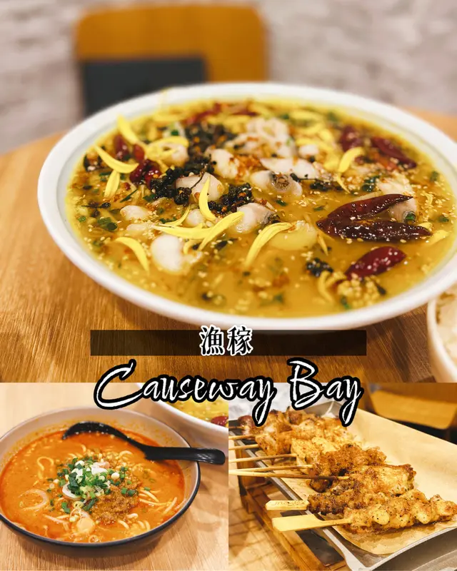 -漁稼-📍銅鑼灣.漁稼酸菜魚($198)招牌酸菜魚份量好大,用上大量酸菜、花椒、辣椒、香蔥和菊花等調味,食落既酸又麻, 十分刺激。.魚片好滑,仲有大量芽菜,、蓮藕等,好足料。.迷你担担面($38)棉質好柔軟順滑,加上肉碎、花生醬和蔥粒嘅調味,幾乎連湯都飲晒。.另外仲點咗唔同嘅串燒,串燒嘅選擇都好好多,或者上枱嘅時候就會用細火溫住,唔驚放到涼咗。.雞腿肉串 ($14)雞中翼($12)雞皮串($12)雞軟骨串 ($14)個人推介必點雞皮串,燒過後都保持比較軟身,而非燒到完全乾脆,食落好滑,啖啖骨膠原口感。.穀飼和牛串 ($18)一口牛大細,咬落好香牛味,肉質唔韌。.豬腩片串 ($14)豬大腸串($12)燒扎肉串($10)估唔到連扎肉都可以做串燒,加埋調味料食落都好惹味。.咸檸梳打 ($32)茉莉綠茶 ($24)飲品都好大杯,配上濃郁嘅酸菜魚同串燒剛好。.查看更多