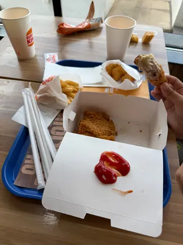 講到食物,漢堡王嘅招牌皇堡真係冇令我失望。個包烘得啱啱好,表面金黃香脆,入面又保持住鬆軟。中間嘅牛肉扒煎到外焦內嫩,咬落去肉汁四溢,肉味濃郁得嚟又唔會覺得膩。加上生菜、番茄、酸瓜同埋特製醬汁,層次豐富,每一口都充滿住美式快餐嘅豪爽感。除咗皇堡,我哋仲點咗雞塊同薯條。雞塊外皮炸得金黃酥脆,入面嘅雞肉嫩滑多汁,配上番茄醬,味道一流。薯條就係粗薯條,夠晒香脆,食落口感十足,唔會好似啲細薯條咁易淋。服務方面,職員態度都算親切有禮,落單同埋送餐速度都唔錯。就算係高峰期,都冇等好耐就有得食。…查看更多