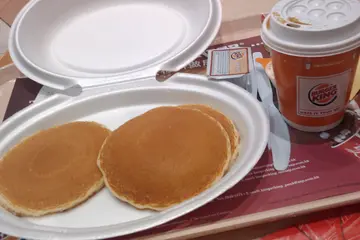 ~就將飲品quota留給心愛的星巴克 XD這次吃到的hotcake density甚高~a little bit too dry~~但質量當然比M字記來得好~~但主角還是集中於maple syrup身上~獨有的甜味還是吸引著小比的注意力~~可幸hotcake不會像MM吃到的氣孔特多~稍一不慎就索得濕濕~嚼起來jek jek聲~~~完成三塊全沒難度~還是第一趟把人家的maple syrup用清光~~~吃飽飽~坐四個鐘頭機~~落機又剛好有胃納開餐~perfect XD只可說自已夠老土~還是覺得禁區內的burger king 質素較現在勁開分店的集團burger king為佳~~同時還發現原來自已剛好一年之前又在這裡為BK發了個hotcake食評 XD…查看更多