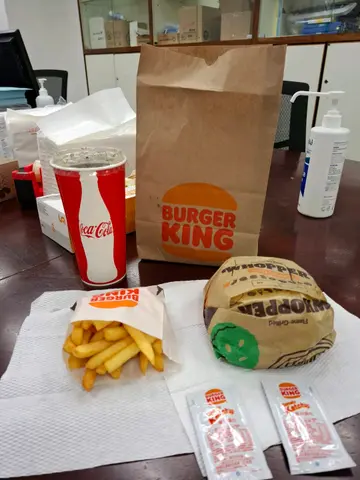 搭夜機 早左到機場 周圍睇下有咩食 發現很久沒遇見的burger king了呢一查之下原來全香港得番兩間 抱住懷舊心態即管一試人均消費九十多 接近一百蚊一個餐 印象中以前無咁貴? 叫左兩個一號餐 (雙層煙肉芝士華堡)汽水好大杯 薯條都係粗個隻 整體味道感覺同以前差不多 無話好食左或者難食左 附近自由坐座位對住停機坪 可以邊食邊望下飛機 有景睇下 少許chill位置都算好入下 要行一段長路 起碼十分鐘先行到上機前食個快餐 算係一個快靚正好選擇 …查看更多