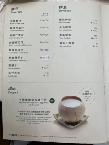 漢記海鮮酒家(鯉魚門)由於公司位於觀塘,每逢有客戶到港,尤其是第一次來香港的客戶,必定會安排香港熱門打卡點鯉魚門食海鮮,而鯉魚門的漢記海鮮酒家是指定餐廳。聽老闆林生講,餐廳在近年已經沒有自己入貨海鮮,都係同隔離的海鮮檔攞貨,只係專心做好「加工」環節。漢記有兩層,樓下大概6張大枱可以坐8-10人,和幾張幾枱。本人超中意食海鮮,呢度道道海鮮都煮得好好味,食到舔舔脷。今天5個人,點左象拔蚌刺身,水煮螺,椒鹽賴尿蝦,胡椒蟹,辣炒花甲,辣煮海螺浸米粉,腐乳炒通心菜,仲有一扎西瓜汁,4個椰王燉奶,木瓜芒果生果盤,埋單接近$4800。呢個價錢在鯉魚門算是好公道了!如果中意食辣,一定要點辣煮海螺浸米粉,生鐵鍋放在gas爐煮,啲辣汁越煮越辣,但米粉煮得耐會變糊,所以我地是米粉另上,要食果陣再加落去煮,越食越惹味。另外推介嘅是呢度的椰王燉奶,是即叫即燉,成日會賣斷,所以想食嘅話就要趁早落叫老闆留俾你。椰汁的清香和奶香完全融合一齊,啲奶又燉到岩岩好,勁香勁滑,超正,…查看更多