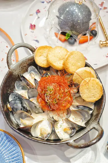 🤑價錢約$200-400💐環境同擺盤好啱打卡 可以帶埋寵物去打卡 但食物味道就只係正常🪑建議要book位 見全部坐滿 💐黑魚籽牛油果木瓜煙三文魚他他 $168用幾種食材整成一層層ge圓餅形 正常都可以篤落去一次過食幾層 但係呢個篤落去好易散開 💐辣肉腸白酒忌廉煮青口 $128 青口肉比想像中細粒 唔算最高質嘅青口 同其他餐廳相比 會有比較有傷害💐麵包蟹意大利飯 $218店員落單嗰陣已經話啲飯偏硬 問我哋使唔使特登整淋啲 好彩最後揀左淋d 因為都算較硬 調味唔算好好 最後都冇食晒💐潘朵拉的盒子 $168擺盤100分 可以用個錘仔 整碎最面ge糖衣 但蛋糕冇咩味 比較硬 我哋都冇食晒 伴碟嘅糖同糖衣 有啲都比較硬💐飲品🔹富士山 破曉 $82靚得來都算好飲 幾milky 面頭嘅脆脆 甜甜地幾好食🔸OMG 5C $88有五款果汁 例如火龍果 檸檬汁 奇異果汁 都幾fresh 擺盤扮晒好似飲shot咁