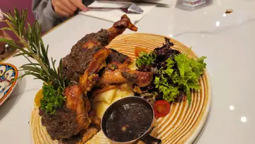 🍬🍭漫花燈火OMG🩷再次黎以人氣打卡萬花筒作為特色,過千片玻璃片組成既萬花筒隧道仍然好吸引,要打下卡🌈今次有幸坐係彩虹梳花牆,用餐時可以望住七彩繽紛既糖果色系既裝修,同埋放滿七彩玻璃珠樽既兩條大柱預早買左瑰麗星辰二人盛宴前菜:西班牙伊比亞辣肉腸白酒忌廉煮藍青口配牛油多士,以雙柄鍋上枱,擺盤幾靚。最出色係個白酒忌廉汁,又香濃又唔油膩,非常好味,青口肥嘟嘟,辣肉腸有少少咸主菜🪻🥗油封法國鴨腿伴自家製芝士薯蓉鴨腿燒得好香,肉保持到嫩口。上枱伴沙律、食用花&薯蓉,又靚又夠晒份量🦀黑魚籽麵包蟹意大利飯:意大利飯加入洋蔥、蟹膏、三色椒同埋白酒煮香,飯粒入晒味,飯面仲放左大量麵包蟹肉、黑魚籽、食用花&金箔,以麵包蟹蓋裝住,感覺好矜貴,碟仲用左大大小小既卵石裝飾🪞🖤🍫黑鏡子之謎,外面係脆脆既朱古力片,內裡係香濃既咖啡雪糕,朱古力同咖啡好夾,又唔會太甜👍