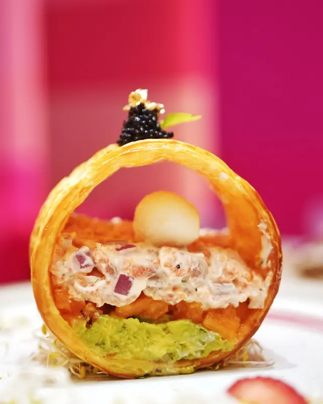 自家製酥皮黑魚籽牛油果煙三文魚水牛芝士波波他他