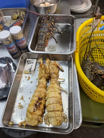 因為有網紅介紹, 山長水遠搭地鐵過嚟。兩隻椒鹽瀨尿蝦320蚊。唔知算抵唔抵?海鮮湯飯60蚊。蒸龍躉60蚊。瀨尿蝦都算好食。海鮮湯飯啲蝦就唔係好新鮮。龍躉可以唔叫,因為自助餐區都有得攞嚟食,唔使另外收錢。自助餐嗰邊啲食物係任食嘅, 一定會食得飽。湯同埋飯都係任食。佢哋用嘅係一次性餐具。木湯羹唔係幾好用。建議自己帶餐具去啦。星期六生意幾好。我哋十二點前去到等咗大概20分鐘先至有位, 要同其他人搭枱。隔離嗰間舖頭, 唔使等位。唔知佢質素點樣。…查看更多