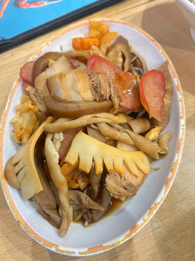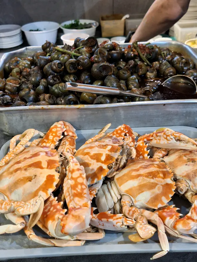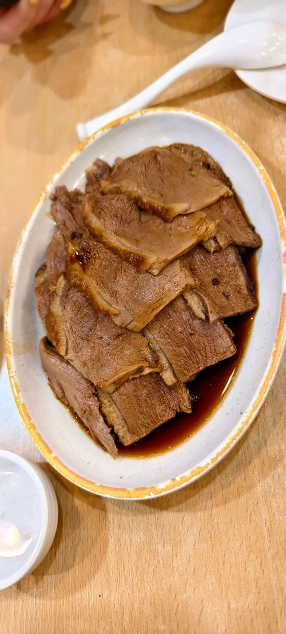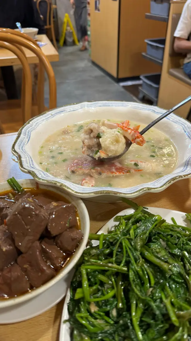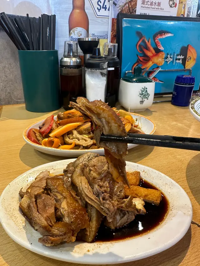 上星期六朋友推介這間在佐敦附近的潮州打冷菜館, 我們大約7:30左右到, 基本上全場爆滿,我們等了20分鐘左右才可入座.因為我們只得4人不可以食太多菜式, 基本要食當然潮州鹵水系列.同行朋友推介鵝腸, 我們點了雙併鵝腸併豆腐($108).鹵水豆腐有驚喜~外表脆脆,咬下充滿鹵水汁好juicy.鵝腸很爽脆😋霸王脱骨豬手($128)~果然超級軟滑, 可惜未做到入口即溶的感覺. 不過也不算太差.煎蠔餅(大份$108, 細份$92)~ 沒有鴨蛋香味,蠔仔肉也比較偏細粒. 真心麻麻地. 潮州鮮蟹粥($173)~ 失望, 蟹肉少,除了蟹肉還有幾隻蝦仔. 胡椒粉&薑味太濃又辣,完全蓋過海鮮粥該有的鮮甜味道😔薑汁炒芥蘭 ($70)~ 最正常的菜,可惜薑汁味偏淡. 總結:地點也算遊客區(近油麻地廟街), 4人食了$660 有4杯飲品 (人均$165). 價格都不算太貴,而且有冷氣,比起坐戶外打冷餐廳都算合理吧. …查看更多