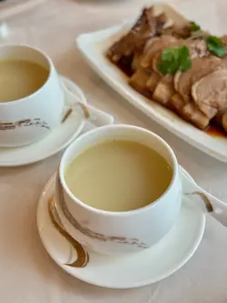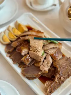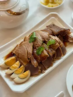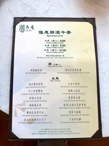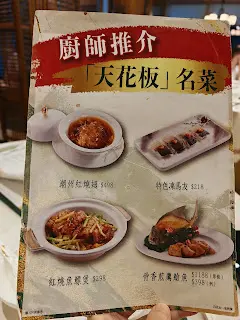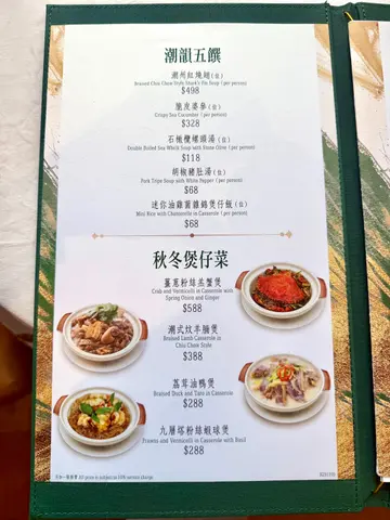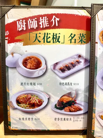 吃得出菜式來自資深手藝的師傅,從味道及烹調方式可見,首次光顧,第一印象良好!除了耳熟能詳的最受歡迎菜式之外,不乏手工菜及傳統菜,廚師推介「天花板」名菜非常吸引,二人飯局,先嚐這些。小食滷水鵝拼盤 $198清醇不過鹹的滷水汁,香氣討好,醃得入味,拼盤有鵝肉、五花肉、雞腎、豆腐及雞蛋。特式凍馬友件(4件) $218處理精緻,整齊的長方塊,已起骨,皮滑肉嫩,放上做成膏醬的普寧豆醬,味道更鮮香。潮州红燒翅 $498足三両牙揀翅,翅針質地軟糯,特別適合做紅燒翅。湯頭黏調濃郁,翅針柔順貼服,啖啖滋味,加少許芫荽,添香增層次。脆皮婆参 $328做得非常好,薄薄的脆口外層、對比軟而有力的內心,入口膠質豐富,鮑魚汁亦滋味。紅燒魚鰾煲(4件) $298再來一道紅燒,因為喜愛湯汁濃郁,魚鰾再上一層次就是花膠,所以同樣膠質豐富,雖然口感比較爽硬,做得好,同樣食得過。混合了蝦、魷魚、冬菇及雞肉,精華盡吸,佐飯不錯。清心豆爽 $36*2名副其實,清澈透明的清心丸很爽口,甜度適中,正好平衡以上菜式的濃稠之味。位於尖沙咀知名食廈,走中高檔路線,佈置明亮,空間足夠,服務到位,值得重訪。…查看更多