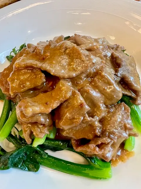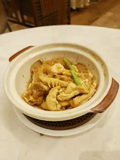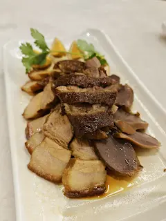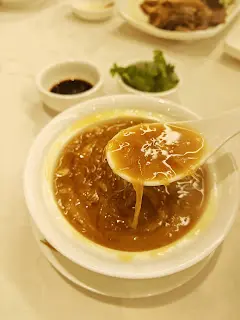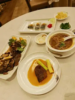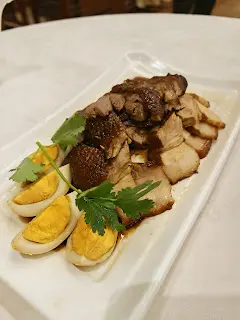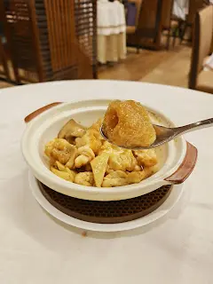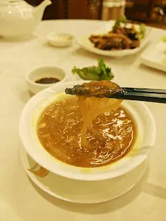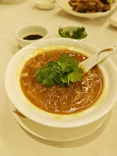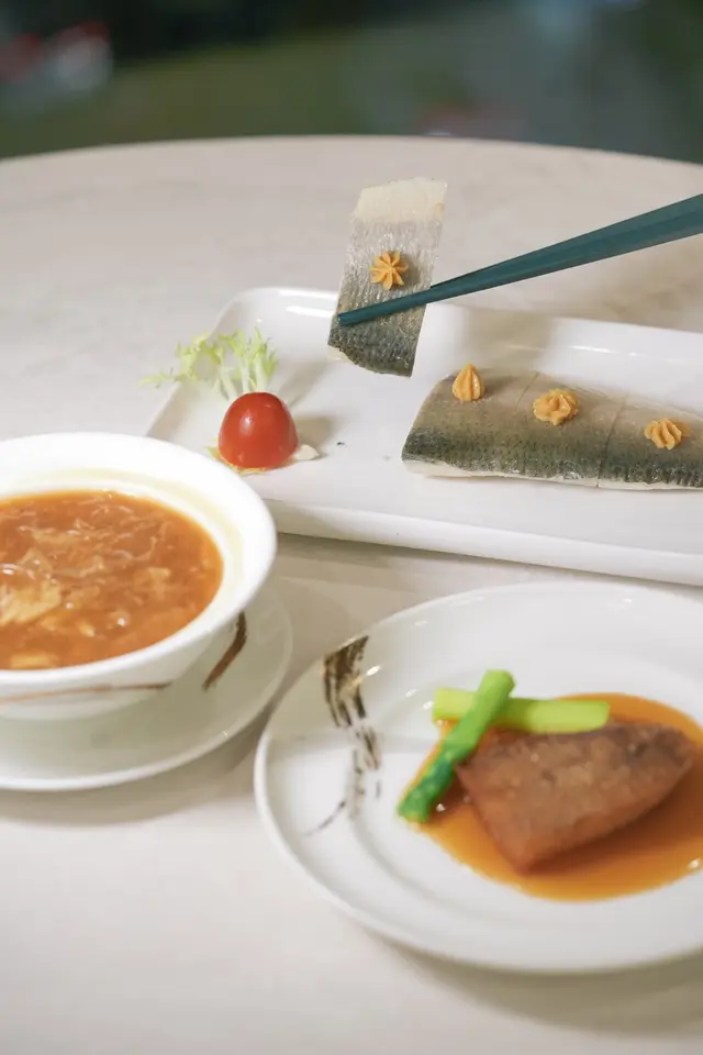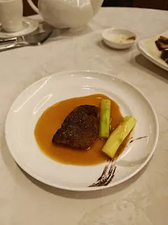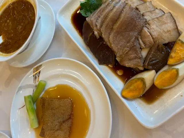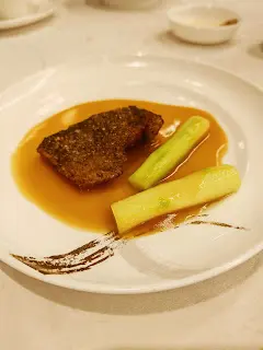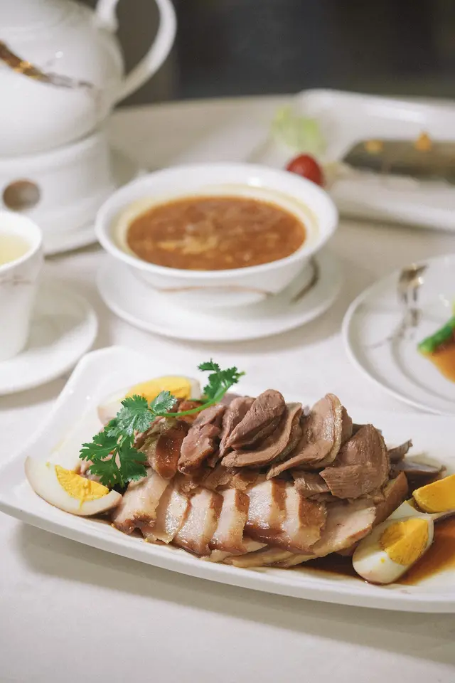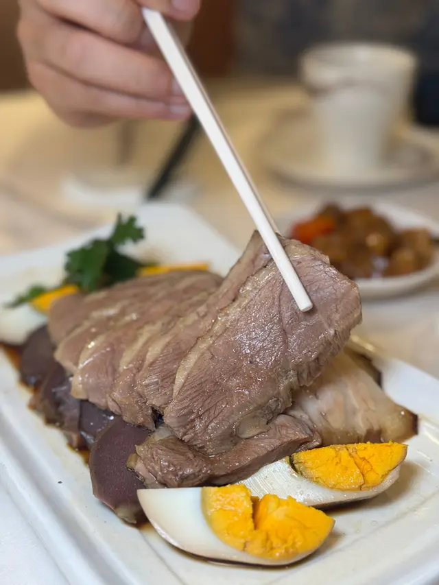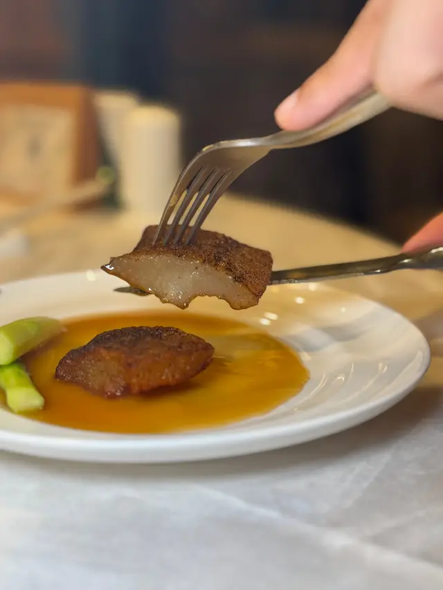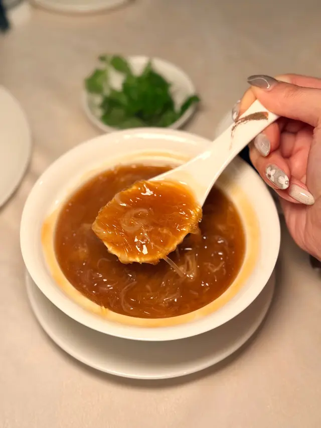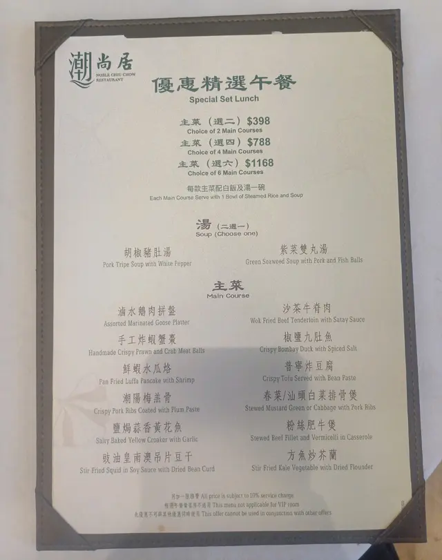 吃得出菜式來自資深手藝的師傅,從味道及烹調方式可見,首次光顧,第一印象良好!除了耳熟能詳的最受歡迎菜式之外,不乏手工菜及傳統菜,廚師推介「天花板」名菜非常吸引,二人飯局,先嚐這些。小食滷水鵝拼盤 $198清醇不過鹹的滷水汁,香氣討好,醃得入味,拼盤有鵝肉、五花肉、雞腎、豆腐及雞蛋。特式凍馬友件(4件) $218處理精緻,整齊的長方塊,已起骨,皮滑肉嫩,放上做成膏醬的普寧豆醬,味道更鮮香。潮州红燒翅 $498足三両牙揀翅,翅針質地軟糯,特別適合做紅燒翅。湯頭黏調濃郁,翅針柔順貼服,啖啖滋味,加少許芫荽,添香增層次。脆皮婆参 $328做得非常好,薄薄的脆口外層、對比軟而有力的內心,入口膠質豐富,鮑魚汁亦滋味。紅燒魚鰾煲(4件) $298再來一道紅燒,因為喜愛湯汁濃郁,魚鰾再上一層次就是花膠,所以同樣膠質豐富,雖然口感比較爽硬,做得好,同樣食得過。混合了蝦、魷魚、冬菇及雞肉,精華盡吸,佐飯不錯。清心豆爽 $36*2名副其實,清澈透明的清心丸很爽口,甜度適中,正好平衡以上菜式的濃稠之味。位於尖沙咀知名食廈,走中高檔路線,佈置明亮,空間足夠,服務到位,值得重訪。…查看更多