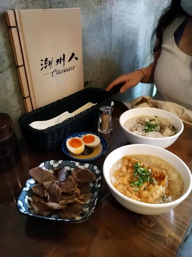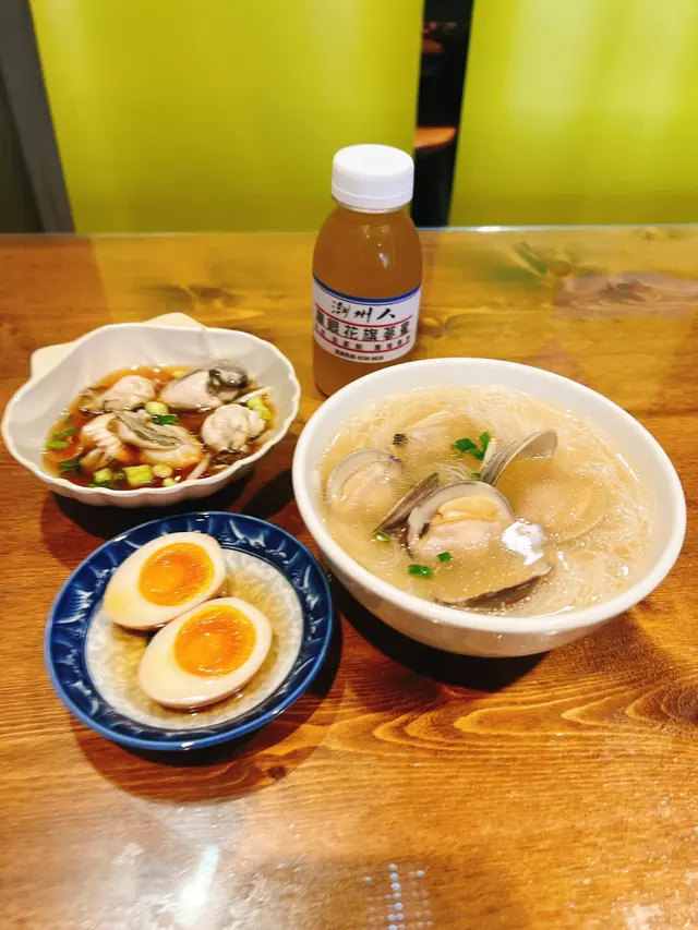 點進呢間潮州人嘅時光,每一啖都帶我去咗潮州街頭🍜。首先,個招牌花膠米粉,真係標準得過得去,花膠滑溜得嚟黃金濃郁,湯底清甜得嚟唔油膩,飲一啖湯,覺得自己都精神啲。再嚟個清酒大蜆米粉,大蜆肥美鮮甜,喺清酒嘅提味下,更加突顯海鮮嘅清新,話咁快就食晒半碗🥣。而家講返個甘香醉鮮蝦,攞上嚟,蝦仁咬落爽彈,醉香味撲鼻,一次過滿足到我對鮮蝦嘅所有幻想😋。而呢個媽咪龍眼花旗蔘蜜,嘩,飲一口就好似暖笠笠嘅愛抱住你一樣,香甜得嚟唔怕膩舌,係個美味解渴嘅好選擇🍯。真係唔好睇佢間舖面細細,但係佢哋做嘅嘢呀,細心得滯,勁過啲所謂嘅大牌子。而家講食物都要講心意,潮州人就真係做到今時今日少有嘅真心誠意。效率都好好,唔洗等太耐,個個食客都笑容滿面咁走。下次想食啲實在得嚟有特色嘅好嘢,揀呢間店,準冇錯👌!…查看更多