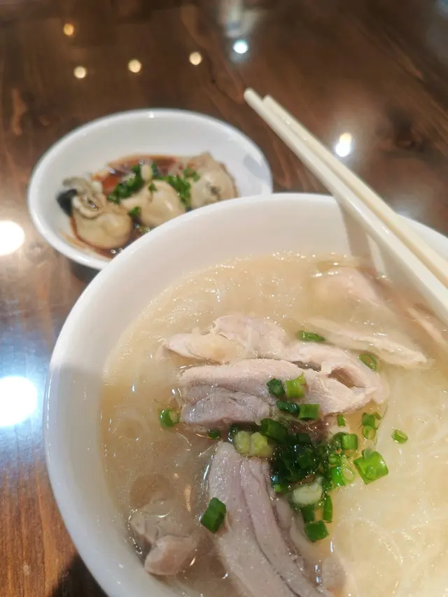 夜晚收工已經9點幾10點,唔想啃老麥,於是行吓公司附近有啲咩嘢食。見到呢間小店裏面冇乜人,以為就嚟收工,點知老細走出嚟問我係咪食嘢,佢哋有排都未收,至少去到12點幾!於是乎走入佢試吓,見到門口同menu都推介花膠米粉,就點咗個,跟餐點多個蔥油廣島蠔。花膠都算大塊,米粉份量只可以話啱女士,如果正常男士晚餐就略嫌少,大胃口人士就更加覺得少。湯底OK,唔係死鹹嗰種,可以俾個like。蔥油廣島蠔就冇乜特別。我冇叫跟餐飲品,因為見到樣樣都係甜,不過老闆係咁叫我試吓啦,免費㗎,低糖㗎,🧐,咁熱情,叫咗竹蔗茅根,OK,唔係好甜。總結係建議米粉份量可以加多啲,應該唔會好影響成本。小店經營困難,可以支持。…查看更多