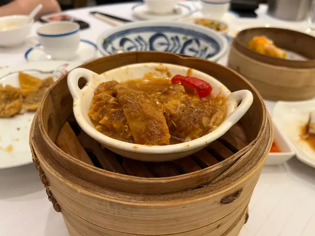 茶壺屬純銀,銀光閃閃,充滿貴族氣派,加上鑲藍邊瓷杯、瓷碟均印有酒家英文簡寫圖案,清雅秀麗,散發一種淑女氣質。 ❤_❤:) 由於大部份香港人北上遊樂,侍應生服務態度比以往出奇地好,殷勤招呼。:) 人數:4人 HK$650
