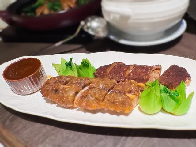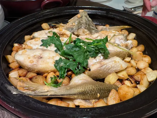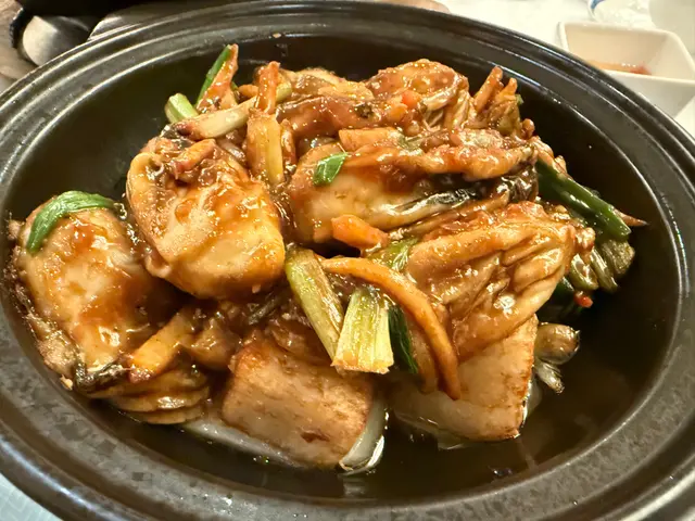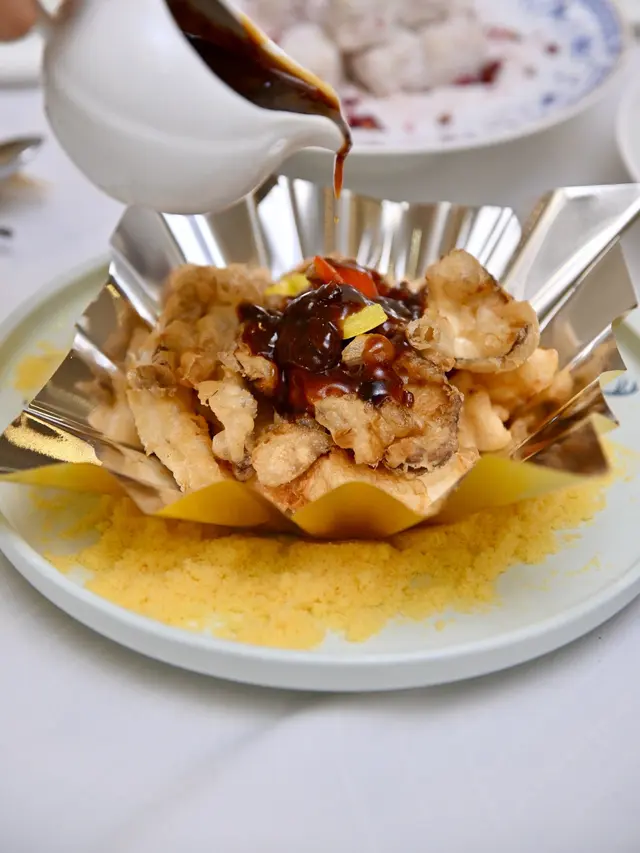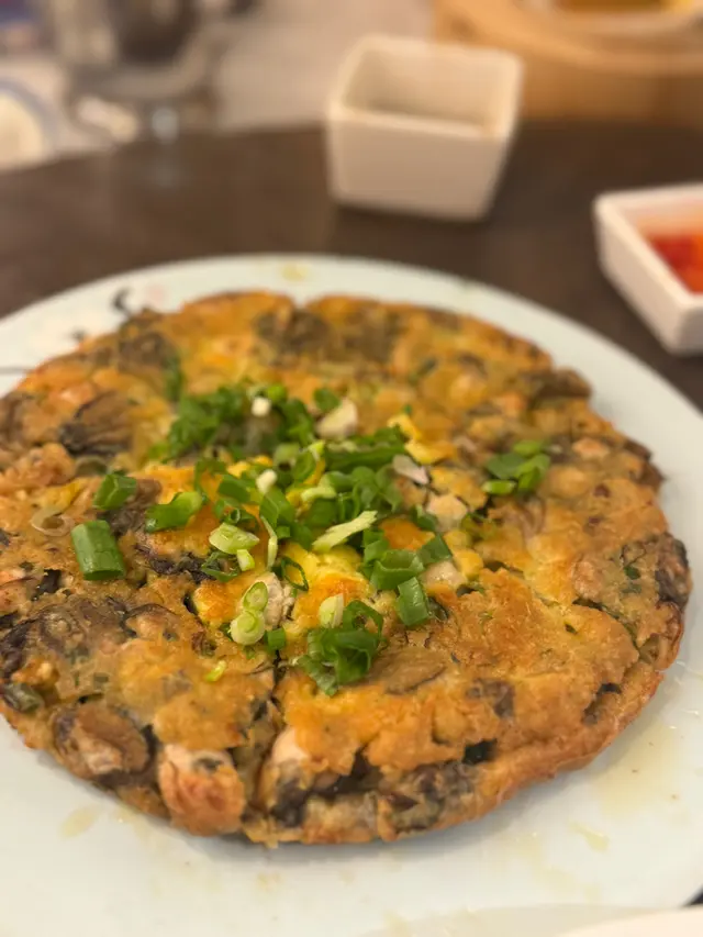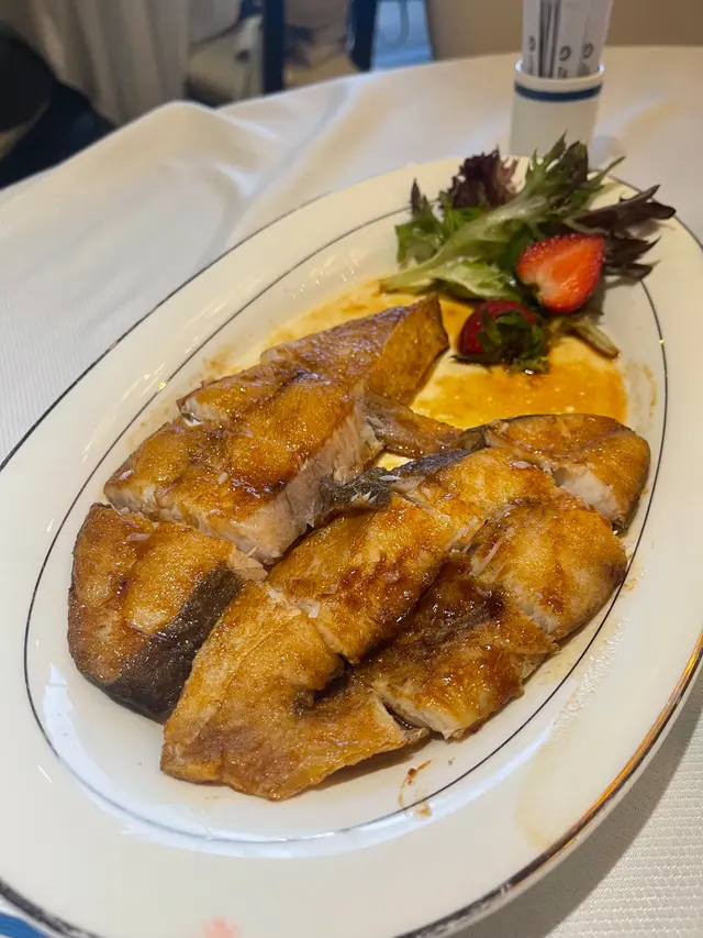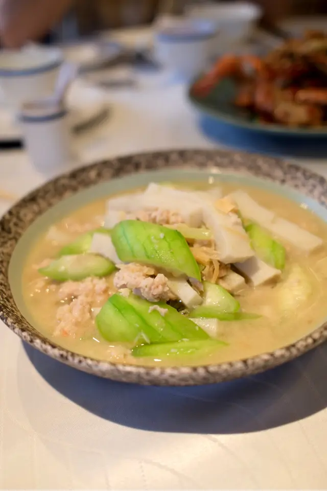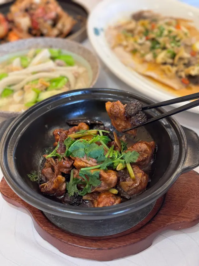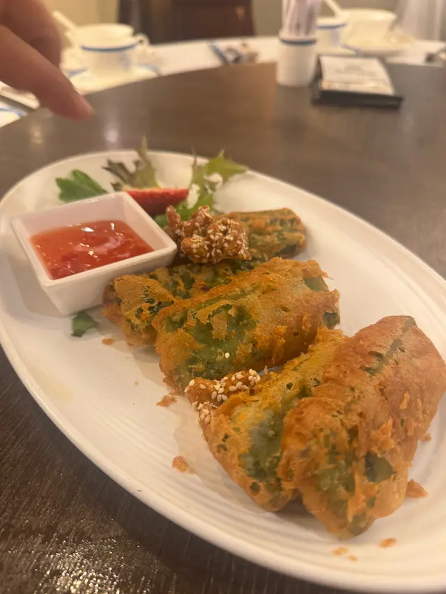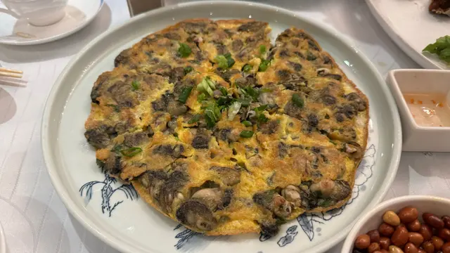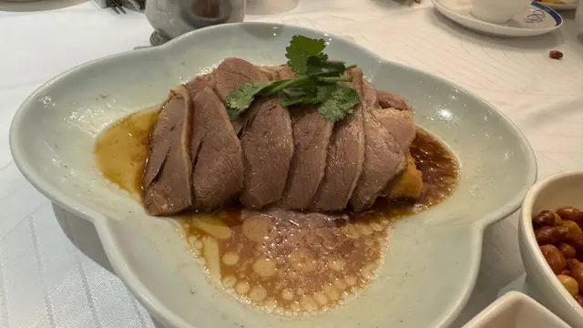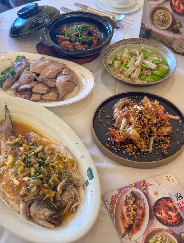今晚同舊同事食飯揀咗呢間中菜佢夜晚有一個六人餐1400蚊,仲有一個買一送一嘅餐牌。我哋七個人食,嗌左個6人餐,打算唔夠再喺個買一送一餐牌入面揀。個六人餐有好多款餸,包括:1 韭菜煎餅 - 煎到好香口,韭菜多過粉,夠足料2 鹵水拼盤有墨魚片,豆腐,鵝片,五花腩同蛋 - 個鹵水汁真係呢道菜嘅靈魂