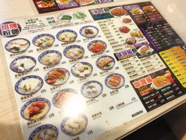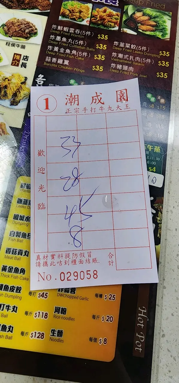 之前在旺角都有食過這間潮成園,印象他們的魚蛋,牛腩都不錯,又抵食。現在屋企附近都新開了一間,地方比較大,環境光猛企理。一頁的餐牌有招牌粉麵,碟頭飯,咖哩系列及一些特式小食。價錢大碗而抵食。門口的櫥窗放滿他們自家工場,每日新鮮製作的各款手打丸類及餃類,眼見乾淨衛生。點了他們自家製的九菜餃併魚旦粗麵,三大隻包得飽滿的餃子,皮薄但不易穿,豬肉九菜比例一半半,食到陣陣九菜香。他們自家製的魚旦都頗出名,白雪雪的魚旦確大粒彈牙,食落不鬆散,真係食到有魚味。湯底清甜,食完不會太口渴。另外是潮式扎肉併魚角粗麵,潮式的扎肉沒有越南扎肉般扎實,外表跟魚片相似,是用全豬肉製造,所以啖啖豬肉香,肉質鬆化。炸得金黃的魚角跟魚旦一樣彈牙爽脆,炸過更多了一份香口。腐乳通菜, 咸咸香香。查看更多