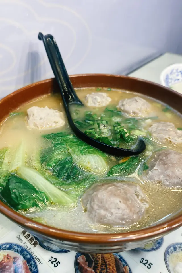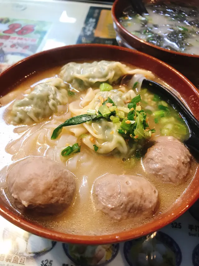 去慈雲山中心買完野,今晚簡單食個粉,就試下呢間主打牛丸既睇下係咪咁掂😛✨牛丸韮菜餃河: 腩汁湯底唔錯,好飲得黎唔重味精感。韮菜餃皮薄大大隻, 韮菜饀夠晒多。 牛丸真係勁爽勁彈,牛味濃,食落仲要有d 肉汁,真係幾得👍✨一品四寶:一碗有齊魚片,魚蛋,扎肉,墨丸,貢丸,魚餃都幾足料。 佢d 墨丸,貢丸真係爽彈到不得了,而且juicy大大粒,真係樣樣都咁好食。 魚蛋,魚片都同樣好味。✨✨呢度價錢親民,份量好夠飽,下次再試下其他野先。查看更多