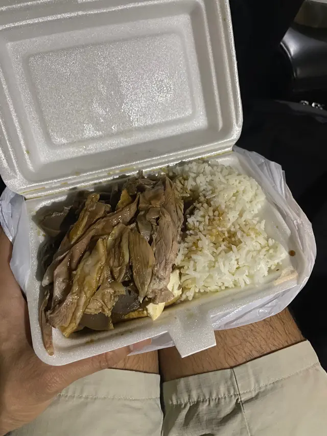 過左嚟大坑呢邊食lunch,就入左呢間鋪試下佢啲鹵水鵝。鋪位好細,不過快快趣食個lunch 都接受到既。叫左個鵝片雙拼飯,雙拼既餸揀左豬頸肉同沙薑雞,價錢65蚊左右。飯嚟到賣相唔算討好,不過佢啲餸份量唔少,個飯都算豐富。鵝片啲肉唔鞋,滑得嚟又夠冧有肉感。豬頸肉一般,沙薑雞唔錯唔會全部都係骨。另外個飯其實會有埋鹵水豆腐,變相個飯其實有4樣餸,好滿足。一樣特別既係佢呢度隻鹵水汁好野味,比其他鋪頭野味好多。查看更多