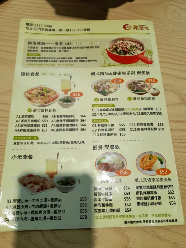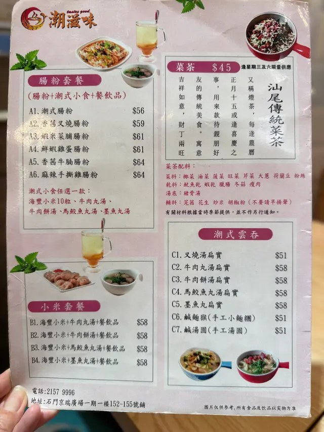 約咗今日(12-9-2025 Fri)同女同事PM一齊出去食飯,我原本想同佢去傑志膳房,但佢話我知裝修中,打亂咗陣腳,咁去Piano Piano,但已經有人等位,我叫佢去睇CIAO,但佢行咗去第二喥,我眼見有人入去CIAO坐,之後我哋行去,係有位,但迫到安排唔到俾我哋,咁我哋去蒸蘆啦,坐低咗睇menu,所有特色點心都售罄,於是走人。咁去邊喥食?我哋行嚟呢邊睇,最後都係呢擴充咗嘅呢間,嚟到係有位嘅,睇完menu,PH揀咗$61.00嘅潮式腸粉餐香茜叉燒腸,要10粒海豐小米,加$3.00飲凍咖啡。我揀$61.00嘅潮式腸粉餐蝦米菜脯腸,馬鮫魚(湯),飲凍茉莉綠茶少冰。凍咖啡同香茜叉燒腸即到,份量適中,食落,腸粉口感唔錯又滑,叉燒係全瘦,冇蜜味係預咗。3.5分海豐小米黐住個碟,口感煙韌,冇留意咩餡料,但算香口。5分我杯凍茉莉綠茶少冰呢?莫講話甜,綠茶味都好淡。2分馬鮫魚(湯),湯有少少胡椒味,魚丸口感冇問題,味道亦濃。3分蝦米菜脯腸呢?等好耐好耐,係咪漏落?我哋催催,應該係老闆娘嘅人答個個都“爭”𡁵腸粉。終於嚟到,見到份量好多,蝦米菜脯都多,豉油又多,味道口感都正常冇問題。3分最尾我見PM未飲晒嘅咖啡,啲冰都溶咗唔少,我話你杯咖啡淡晒喇。佢答本身都已經淡。服務:上咗PM點嘅食物後,我問店員攞個碗仔,係俾一個,之後我叫多一次,店員叫我自己出去攞,佢跟住我出去,話我知喺邊喥,但佢用手輕推我,我心諗,係我嘅問題,但之後已經要我自己出去攞,唔使推客人吧。睇返之前2023年6月4日提交嘅食篇https://www.openrice.com/zh/hongkong/review/%E5%94%94%E5%A4%AA%E6%BB%8B%E5%91%B3-e4844843,佢哋係主動問客人要唔要碗仔。環境:新呢邊啲位舒服啲。抵食係2.7分…Read More