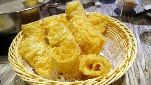 油麥菜 鮮枝竹油麥菜和枝竹也與鮮甜的湯底很搭吸收了海鮮的鮮味