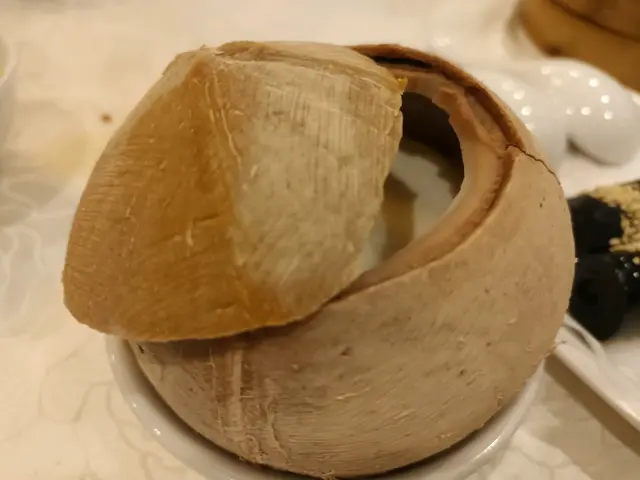 椰子雞鍋先上椰子湯底 大大盤雞肉連椰子肉另上水滾先落雞 加上了椰肉使湯底更清甜雞肉肉質嫩滑 點上自己調的醬料 正