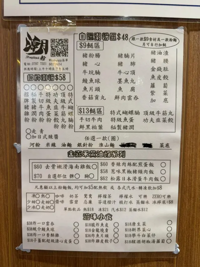在鰂魚涌尋覓地道粉麵,發現這家小巧整潔的專門店。店員親切有禮,環境打理得井井有條,先贏得好感。翻開餐牌,目光立刻被幾款特色小食吸引,實測後證明,它們才是此店的真正亮點,值得用螢光筆劃重點!必食推介:小食冠軍聯盟子薑皮蛋: 這道開胃前菜做得極出色!糖心皮蛋溏心誘人,質感軟滑濃郁,搭配醃製得酸甜爽脆的子薑片,味道層次豐富,清爽解膩,絕對是必點的開場。雞皮餃子: 創意與口感兼具。以香脆雞皮取代傳統餃子皮,包裹著調味恰當的餡料,炸得金黃酥脆,咬下去「咔嚓」作響,油香滿溢卻不膩,令人驚艷。豬肺: 處理得非常乾淨,燉煮得軟嫩入味,毫無異味,口感滑溜帶點彈性,湯汁精華盡收其中,是難得做得出色的部位。豬潤 (豬肝): 火候掌控得宜,粉嫩而不乾柴,口感細膩,沒有惱人的腥味,鮮嫩度十足,喜愛內臟者不容錯過。蜆芥鯪魚球: 鯪魚肉打得彈牙爽口,魚味鮮明,外層煎或炸得微脆,沾上鹹鮮惹味的蜆蚧醬,地道風味瞬間爆發,滋味十足。總結:小食天堂,主餐看選擇這家小店無疑是「小食之王」!子薑皮蛋、雞皮餃子、豬肺、豬潤、蜆芥鯪魚球款款精彩,道道展現功夫與風味,絕對值得專程來品嚐。環境衛生、服務態度亦是加分項。米粉湯底不會太重味,鎖定其招牌小食,配一碗米粉淺嘗湯頭,或是更穩妥的享受方式。懂得點菜,這裡便是尋找地道風味小確幸的好去處。…查看更多