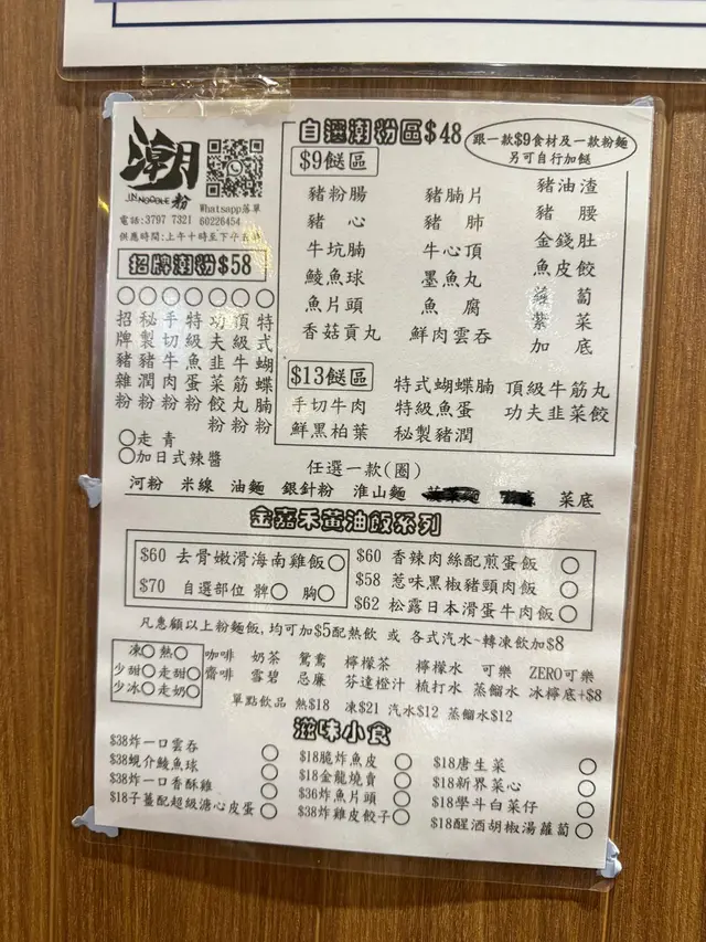 在鰂魚涌尋覓地道粉麵,發現這家小巧整潔的專門店。店員親切有禮,環境打理得井井有條,先贏得好感。翻開餐牌,目光立刻被幾款特色小食吸引,實測後證明,它們才是此店的真正亮點,值得用螢光筆劃重點!必食推介:小食冠軍聯盟子薑皮蛋: 這道開胃前菜做得極出色!糖心皮蛋溏心誘人,質感軟滑濃郁,搭配醃製得酸甜爽脆的子薑片,味道層次豐富,清爽解膩,絕對是必點的開場。雞皮餃子: 創意與口感兼具。以香脆雞皮取代傳統餃子皮,包裹著調味恰當的餡料,炸得金黃酥脆,咬下去「咔嚓」作響,油香滿溢卻不膩,令人驚艷。豬肺: 處理得非常乾淨,燉煮得軟嫩入味,毫無異味,口感滑溜帶點彈性,湯汁精華盡收其中,是難得做得出色的部位。豬潤 (豬肝): 火候掌控得宜,粉嫩而不乾柴,口感細膩,沒有惱人的腥味,鮮嫩度十足,喜愛內臟者不容錯過。蜆芥鯪魚球: 鯪魚肉打得彈牙爽口,魚味鮮明,外層煎或炸得微脆,沾上鹹鮮惹味的蜆蚧醬,地道風味瞬間爆發,滋味十足。總結:小食天堂,主餐看選擇這家小店無疑是「小食之王」!子薑皮蛋、雞皮餃子、豬肺、豬潤、蜆芥鯪魚球款款精彩,道道展現功夫與風味,絕對值得專程來品嚐。環境衛生、服務態度亦是加分項。米粉湯底不會太重味,鎖定其招牌小食,配一碗米粉淺嘗湯頭,或是更穩妥的享受方式。懂得點菜,這裡便是尋找地道風味小確幸的好去處。…查看更多