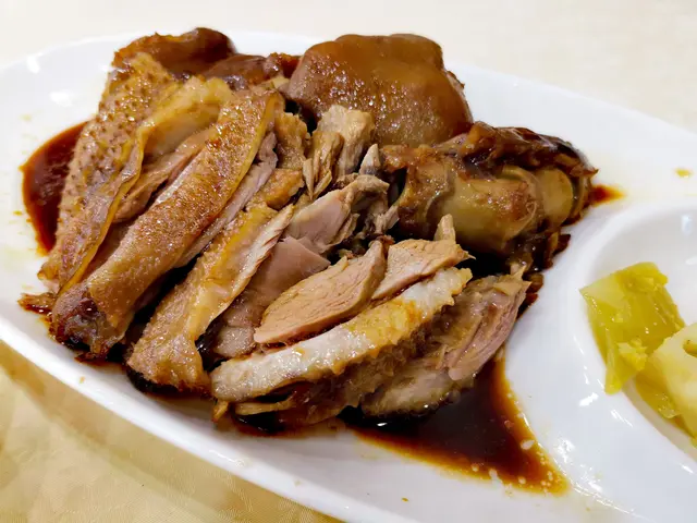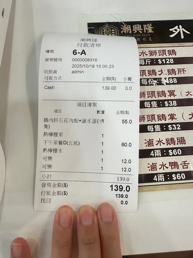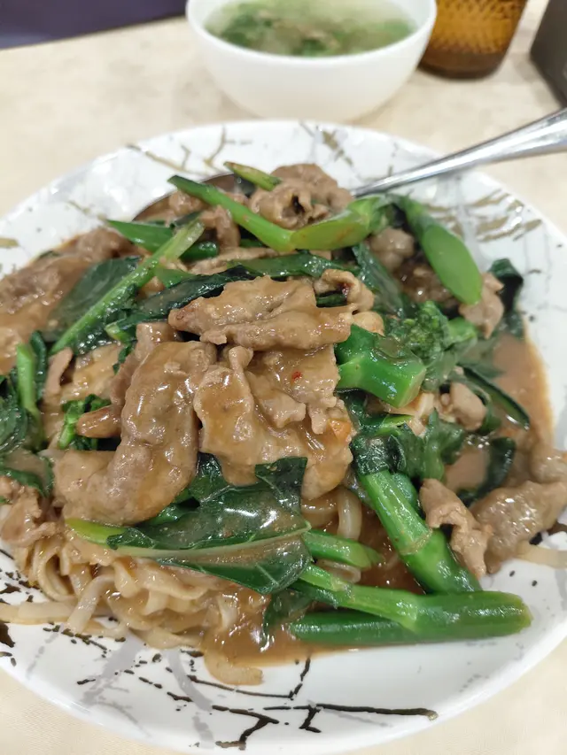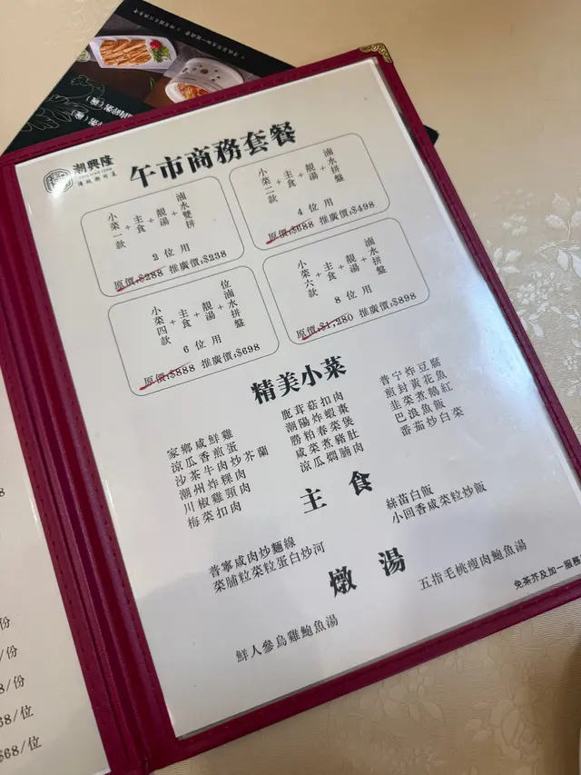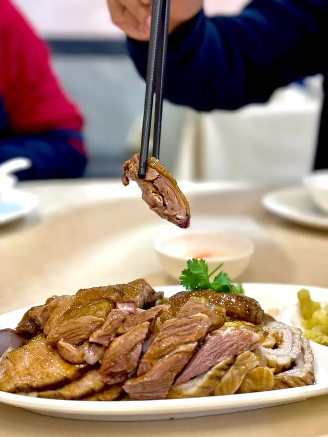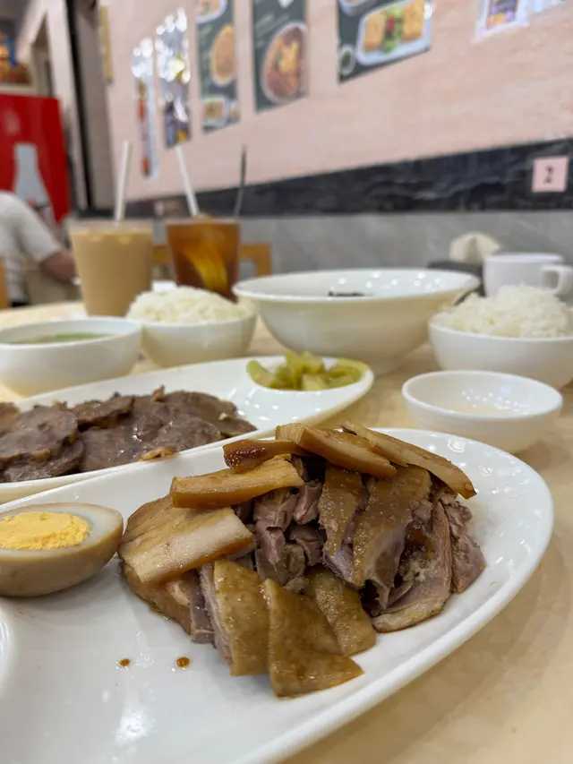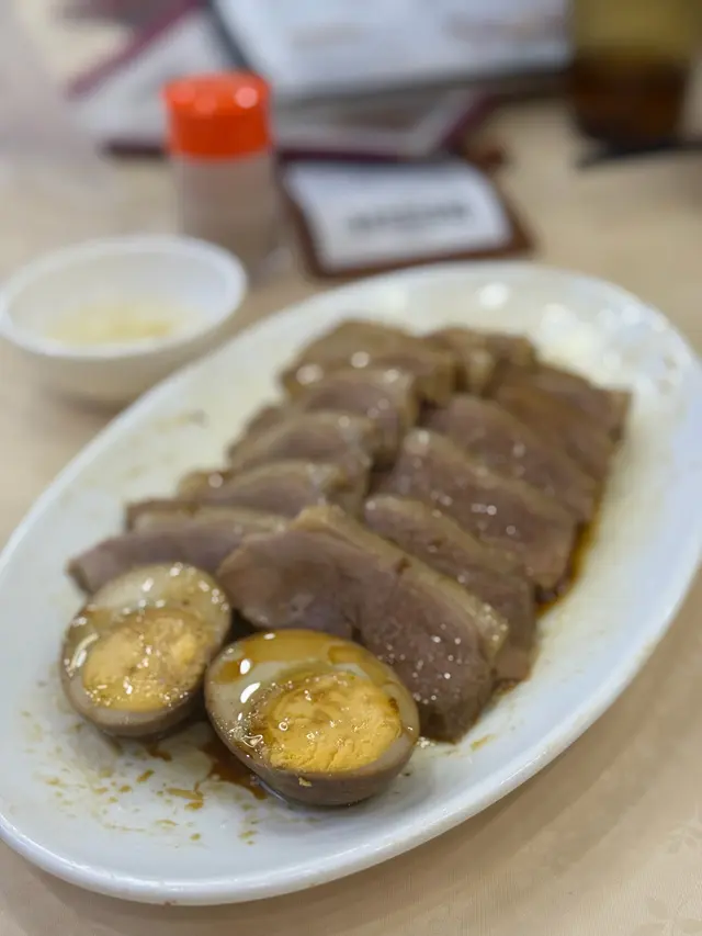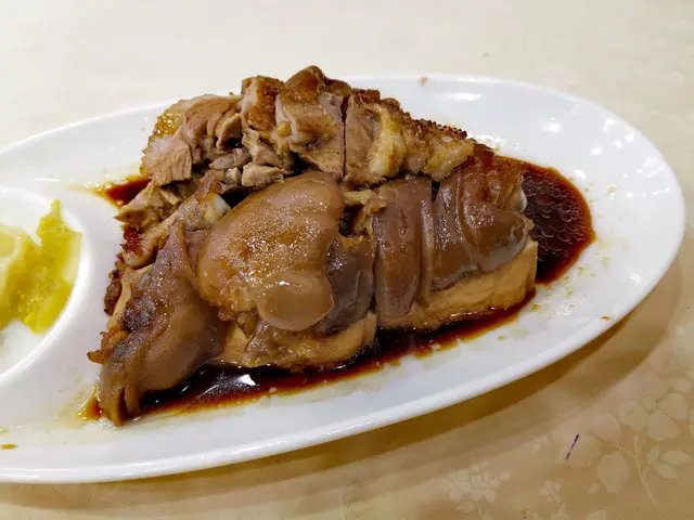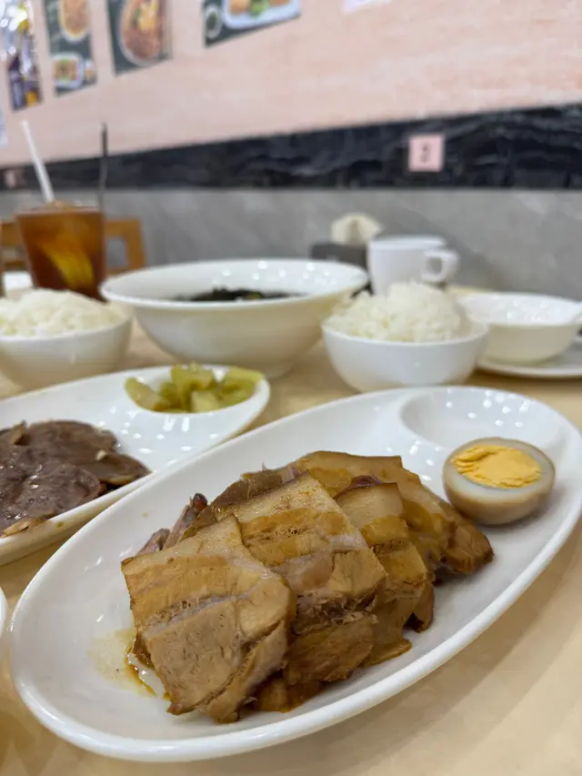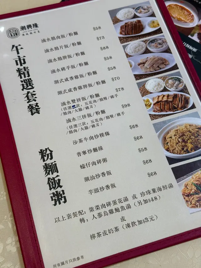 運動後, 很肚餓! 朋友帶我到大角咀, 那邊餐廳價格比較化算, 目標鎖定下午茶! 這個潮州系列的下午茶餐牌, 價格實惠! 所以我倆就在此TEA一TEA.珍珠葉海鮮湯 午餐的餐湯, 紫菜蛋花湯常見, 對於珍珠葉海鮮湯很新奇. 配料:貝類+蠔仔+清湯+香芹+莞茜+金不換+炸蒜 貝類蠔仔煮湯, 有香芹莞茜提香, 鹹中帶鮮甜.珍珠涼瓜腩肉煲 本以為是一般的涼瓜件 & 腩肉, 真身竟然是大大件長方形涼瓜片, 橫放平攤於煲裡. 涼瓜瓜囊已去除, 估計是以壓刀<片>走! 涼瓜炆得軟綿綿, 無需牙力即可享用. 涼瓜甘味仍在, 但煲裡湯汁也有濃濃的甘味. 腩肉皮有燒過的痕跡,而腩肉和脂肪筋膜收縮比例不一。相信腩肉生勾勾放入煲裡跟涼瓜一起燉煮,保證原汁原味。厚身大花菇變成配角了!鵝肉拼五花肉飯+滷水蛋潮州名物滷水鵝, 平時單碟鵝件盛惠百多個大洋.下午茶餐, 鵝肉配飯,還有五花肉&滷蛋, 配飲品, 只需要55元, 計落有著數.鵝肉浸在蒜子醋裡中和肥膩感, 滑滑容易咬, 滷水味柔和, 易入喉. 滷水五花肉, 有肉香也有油香. 蛋半隻,自己獨吞 墊底的滷水豆腐也要沾白醋.凍檸檬茶 走甜少冰埋單免茶介, 免加一, 環境&座位舒服, 抵!下次想食粉麵下午茶雙拼三拼配飲品,還有鵝肝和凍蟹。…查看更多
