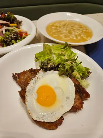 餐廳環境舒服, 伙記好有禮貌, 熱情招呼。 早上人流不太多, 有適當嘅空間, 可以慢慢食。 食物有水準, 多士好脆, 火腿湯麵亦好好味。 上菜速度夠快, 環境舒服, 食物質素也很好, 是間不錯的茶餐廳