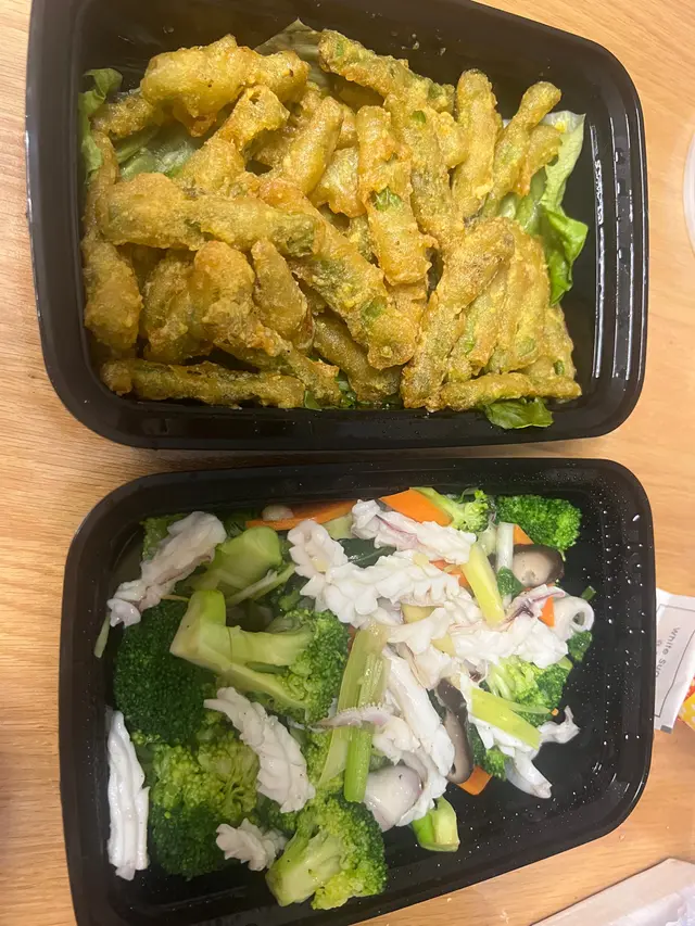 荔枝角這邊粉紅色裝修的茶餐廳《潮食地》,裝潢色彩繽紛、帶有活力。晚市提供不少小菜,配白飯、例湯、熱飲,既地道又簡單。今天不想煮飯,叫了兩個餐外賣回家吃。例湯好足料,好有家的感覺!不過偏鹹少少。金沙黃金四季豆炒四季豆是一道家常小菜,加點新意就讓它變成香口惹味的菜式。四季豆外層沾上薄薄的一層炸漿,加上鹹蛋黃,炸得口感香脆,鹹蛋黃吃起來很香。西蘭花炒鮮魷西蘭花炒得幾好食。但鮮魷煮得過火。如果沒有的話應該更好食。總結:店員有禮,食物質素不錯。下次再嘗試他其他菜式。查看更多