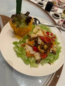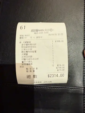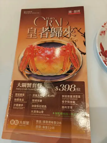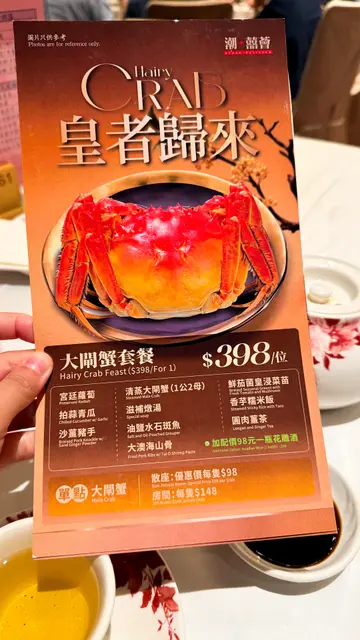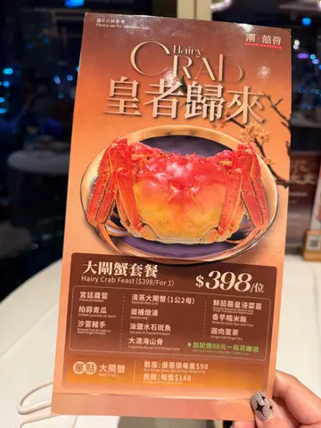 今次約了朋友一齊去位於The ONE 12樓嘅潮 . 囍薈食這款超值大閘蟹宴套餐,店內環境闊落,加埋有個無敵落地玻璃景色,邊食美食還有美景盡入眼簾今晚哩個套餐最大賣點就係以時令大閘蟹作為主打,朋友一早訂枱已訂埋齊人上菜,先來江南五小碟,五味並陳、清鮮醒胃,拍蒜青瓜,爽脆青瓜拍加上蒜香拌勻,酸香中帶微辣,開胃醒神 陳醋雲耳,黑木耳吸飽陳醋香氣,酸潤之中帶韻,口感彈滑宮廷蘿蔔,以花形擺放,蘿蔔爽口,清甜沙薑豬手,豬手經滷後再以沙薑提香,肥而不膩,膠質豐厚雞絲粉皮,雞胸撕絲與粉皮同拌麻香,涼爽嫩滑,味道層次分明接住就係今餐嘅主角,一個大蒸籠上枱,打開後嚴選嘅24隻大閘蟹乸放滿了,店長說每隻都有四両至四兩半,以清蒸保持原味,每隻大閘蟹內都係膏滿黃濃,細膩香滑,蟹肉鮮甜,所以要慢慢細味品嘗,廚房亦配合待差不多先再上其他主食瑤柱花膠海參羹,選用上品瑤柱、花膠、海參慢火調羹,湯底濃稠晶瑩,滋補養顏XO醬花枝冰山蚌,花枝與肉質飽滿,爽脆可口,鮮嫩美味嘅冰山蚌快炒,XO醬辛香濃烈,海味鮮甜中帶爽彈陳皮欖角蒸龍躉,以陳皮幽香與欖角鹹香滲入厚身龍躉肉,魚鮮油潤,龍躉肉質肥美、鮮甜,蒸煮後口感極為軟嫩細滑,入口即化鮮茄菌皇浸小棠菜苗,顏色翠綠,以鮮茄湯底浸煮棠菜苗,加入菌皇提鮮,爽甜清新,潤口平衡古桐芝麻雞,老油雞外皮沾滿了芝麻,皮香酥脆、肉嫩多汁香芋臘味糯米飯,香芋粒粒放在香軟糯米上,臘味粒拌入糯米蒸成,鬆軟不黏,油香四溢最後以窩心薑茶湯丸,以老薑煮沸紅糖湯,內藏芝麻湯丸,香甜帶辣,暖心收尾,中和胃今晚大閘蟹嘅寒氣,十分細心整體店員服務細心,上菜速度快,分量十足,出菜次序調整配合食客節奏,這個價加埋這裡位置同服務,絕對超值抵食…查看更多
