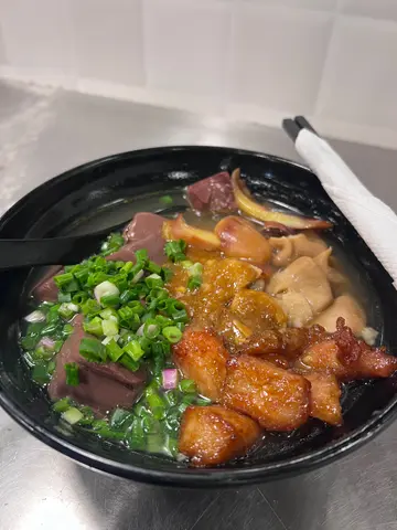 食過返尋味今次嚟到黃大仙呢間車仔麵,午餐時間已經大排長龍,三餸嘅車仔麵加咗價而家係$47,之前$45有三餸🥹不過味道依然好味。嗌咗雞腎➕菜心➕豬腳嘅組合,麵就揀咗河粉,排隊係先揀面類,跟住再去揀想要嘅配菜,最後揀返飲品就可以俾錢,一氣呵成。而最人性化嘅係可以比顧客自己加調味料,調味料有包括沙嗲醬同咖喱醬,另外有辣菜譜同埋蔥花可以自己加。不過辣菜譜真係偏辣,如果唔食得辣嘅人士要小心啦🥵咁樣三餸嘅車仔麵再加埋有嘢飲,嚟講都算好抵,配菜嘅味道亦都唔錯,個人比較鍾意豬油渣,所以最後加配左碟豬油炸,雖然比較偏肥,但耐唔耐食一次都幾過癮,推介住喺黃大仙嘅人可以過嚟試一試👍🏻