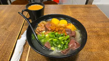 慈雲山濃記車仔麵~3餸1麵底+飲品=$47佢有辣汁同沙嗲醬(唔辣)可以加,加左辣汁,湯底夠味ok既!不過有食食下有條短短地既頭髮😖有時當然好難避免,但衛生情況確實要加強一下!今次叫左蘿蔔,豬紅,豬腸,可惜豬腸超級*銀*咬唔到,其他味道都入味!凍檸茶夠甜正!我覺得凍檸茶要夠甜先好飲,出面好多都好淡又唔甜!最緊要店員有禮貌,有禮貌的店真係藉得介紹同埋都會再去👍🏻👍🏻不過上網睇原來都收好早4:30pm,同埋逢星期一放假。