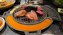 最近因為好耐未食過燒肉,又聽講濟州燒肉食堂有新產品推出,於是同朋友一齊黎試下。一如既往,前菜有五款,包括泡菜、薯仔沙律、醃芽菜等等,雖然前菜要加錢先可以refill,但爐邊蛋同粟米芝士就無限任食,已經好吸引!.第一款係菠蘿和牛五花肉 ($188),呢款真係好有創意,半隻菠蘿中間放滿和牛五花肉,肉味濃郁,旁邊仲有4塊菠蘿,可以當拌碟用,又可以放落爐燒,燒完菠蘿帶甜味同肉香一齊食,口感好特別。.跟住係牛五花芝士燒 ($98),呢款真係好驚喜!牛五花包住一磚目測有5cm厚既芝士,燒熟後牛肉吸晒芝士既鹹香,食落口滿滿芝士味,濃郁得黎又吾會過膩,芝士控一定中意。.而煙肉大蝦 ($115),呢款用煙肉包裹住珍寶大蝦,蝦肉新鮮又厚實,燒完煙肉香同蝦既鮮甜一齊爆發,咬落去好滿足,份量都幾足。.接住有西班牙熟成豬扒 ($258),呢款豬扒厚切到不得了,燒完外層微脆,內裏仲keep到嫩滑,肉汁鎖得好正,食完真係回味無窮,岩晒中意豬扒既朋友。.另外點左韓式馬鈴薯煎餅 ($128),表面鋪滿馬鈴薯絲,煎到薄脆,馬鈴薯香好濃,單食已經好正,仲可以沾埋沙律醬,口感多左一層變化,幾好味。.主食方面試左石頭鍋飯 ($98),呢個石鍋飯用料好豐富,有芽菜、紫菜、紅蘿蔔絲、香菇片、菠菜、牛肉碎同生蛋黃,熱辣辣上枱,加入韓式辣醬一齊拌勻,香氣爆棚,仲食到好多鍋巴,脆口又香,超正!.飲品方面點左柑橘梳打,青檸梳打 ($32),兩款都好清新,柑橘帶少少甜,青檸就酸酸地好醒神,岩晒解燒肉既油膩,飲完成個人都refresh哂…查看更多