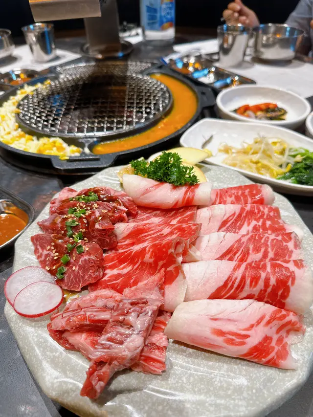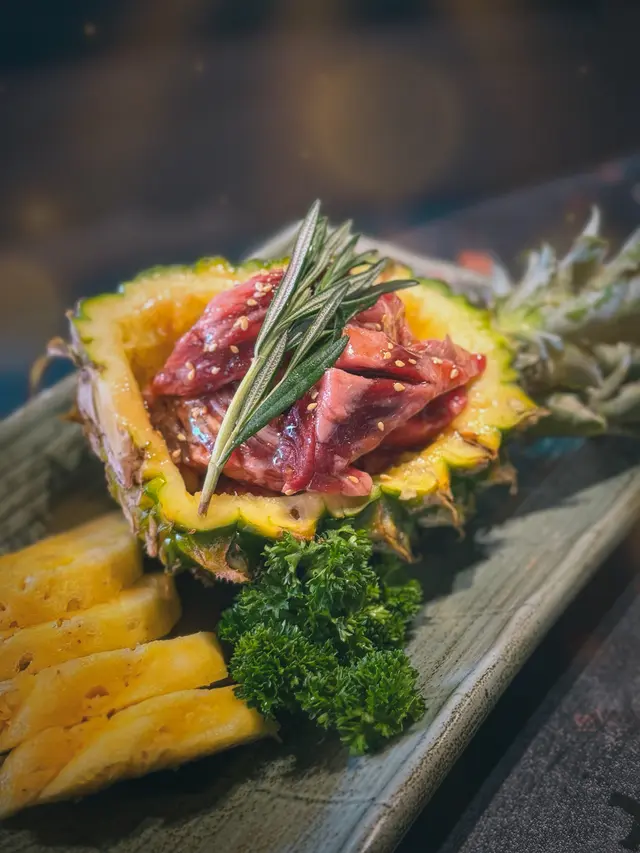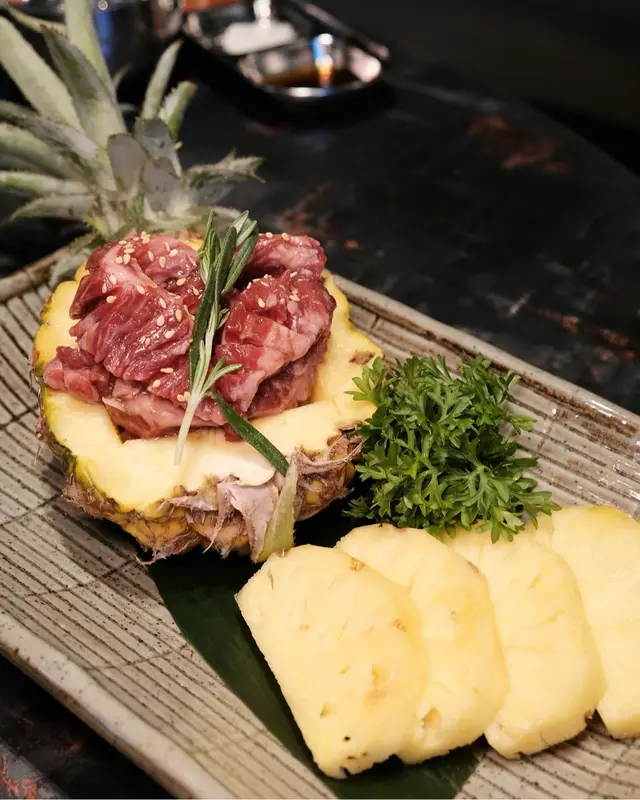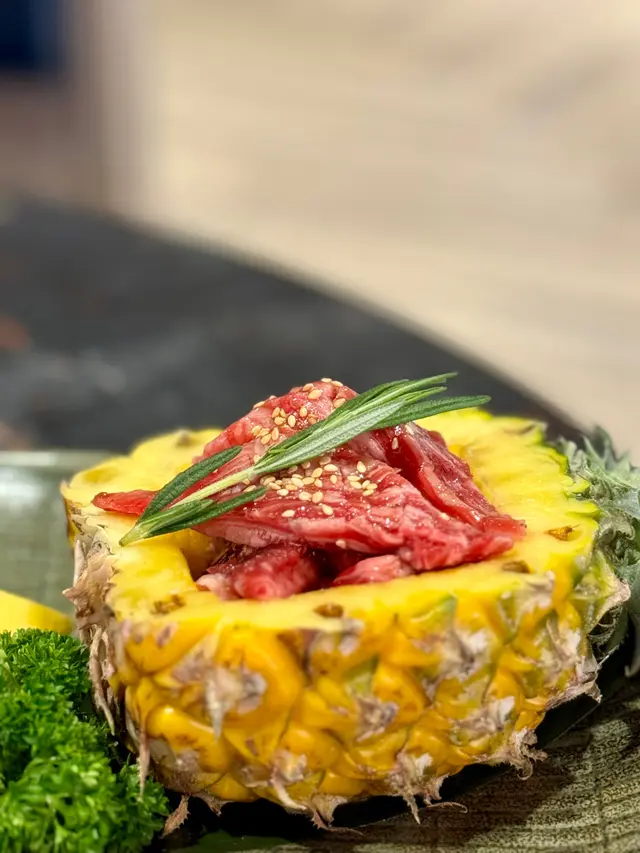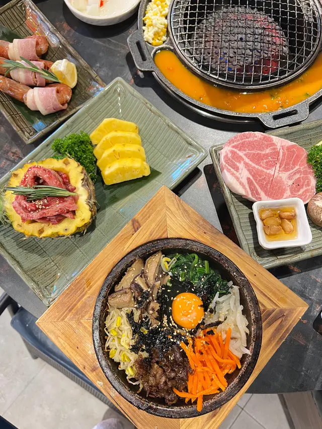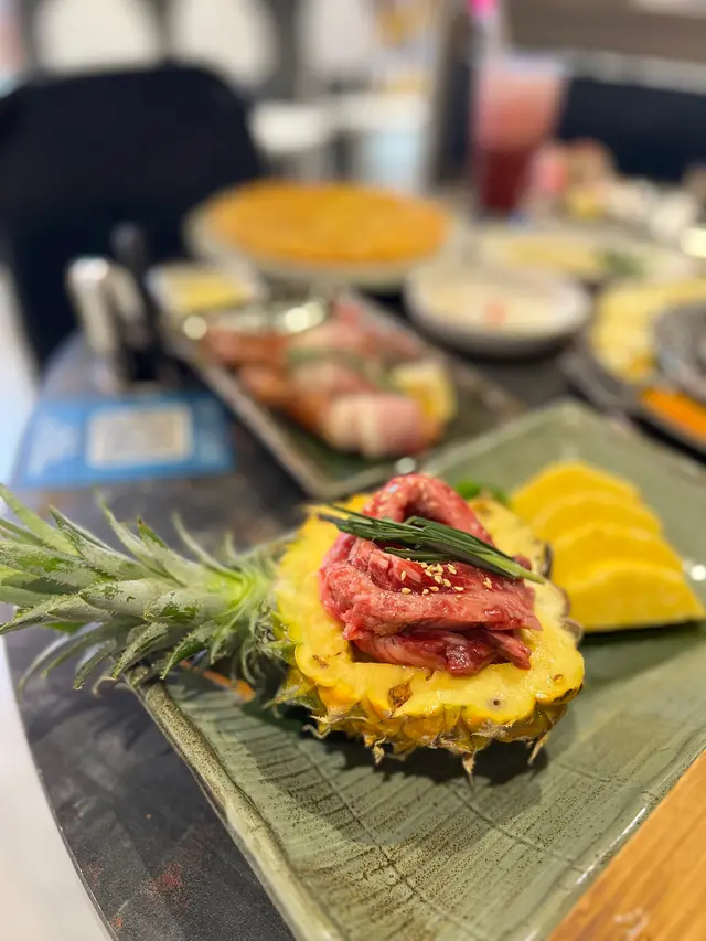 最近因為好耐未食過燒肉,又聽講濟州燒肉食堂有新產品推出,於是同朋友一齊黎試下。一如既往,前菜有五款,包括泡菜、薯仔沙律、醃芽菜等等,雖然前菜要加錢先可以refill,但爐邊蛋同粟米芝士就無限任食,已經好吸引!.第一款係菠蘿和牛五花肉 ($188),呢款真係好有創意,半隻菠蘿中間放滿和牛五花肉,肉味濃郁,旁邊仲有4塊菠蘿,可以當拌碟用,又可以放落爐燒,燒完菠蘿帶甜味同肉香一齊食,口感好特別。.跟住係牛五花芝士燒 ($98),呢款真係好驚喜!牛五花包住一磚目測有5cm厚既芝士,燒熟後牛肉吸晒芝士既鹹香,食落口滿滿芝士味,濃郁得黎又吾會過膩,芝士控一定中意。.而煙肉大蝦 ($115),呢款用煙肉包裹住珍寶大蝦,蝦肉新鮮又厚實,燒完煙肉香同蝦既鮮甜一齊爆發,咬落去好滿足,份量都幾足。.接住有西班牙熟成豬扒 ($258),呢款豬扒厚切到不得了,燒完外層微脆,內裏仲keep到嫩滑,肉汁鎖得好正,食完真係回味無窮,岩晒中意豬扒既朋友。.另外點左韓式馬鈴薯煎餅 ($128),表面鋪滿馬鈴薯絲,煎到薄脆,馬鈴薯香好濃,單食已經好正,仲可以沾埋沙律醬,口感多左一層變化,幾好味。.主食方面試左石頭鍋飯 ($98),呢個石鍋飯用料好豐富,有芽菜、紫菜、紅蘿蔔絲、香菇片、菠菜、牛肉碎同生蛋黃,熱辣辣上枱,加入韓式辣醬一齊拌勻,香氣爆棚,仲食到好多鍋巴,脆口又香,超正!.飲品方面點左柑橘梳打,青檸梳打 ($32),兩款都好清新,柑橘帶少少甜,青檸就酸酸地好醒神,岩晒解燒肉既油膩,飲完成個人都refresh哂…查看更多