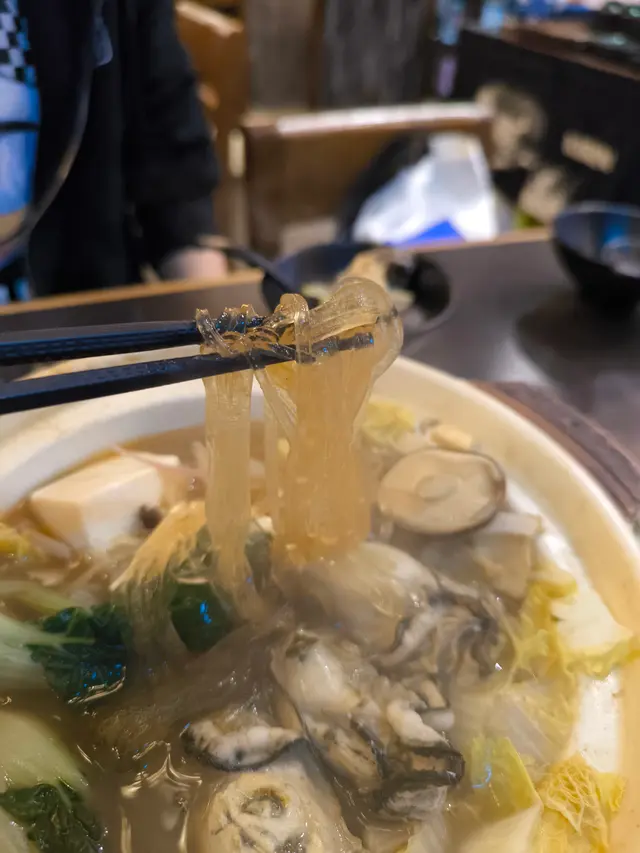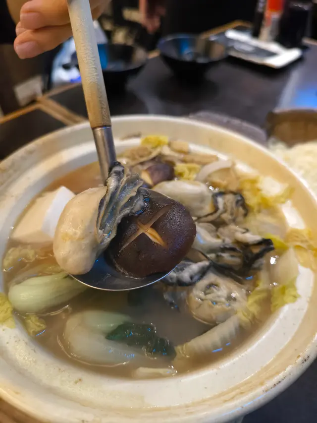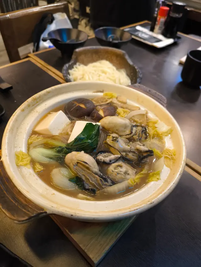 石狩廣島蠔鍋 HKD138,追加烏冬 HKD40。廣島蠔口感爽口,最重要蠔味香濃,加上洋蔥、鮮菌和菜,令湯鍋更加清甜,加了粉絲和烏冬,都一樣口感彈牙又飽肚。