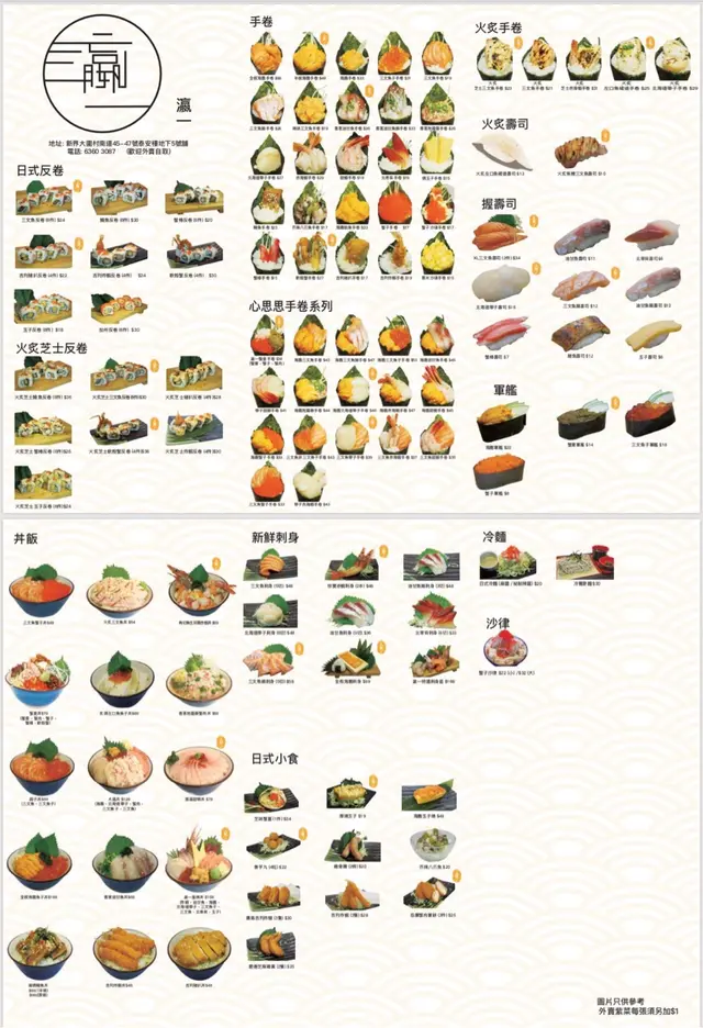 瀛一 (大圍) 網址: https://s.openrice.com/QrbS0P20900 地址: 香港大圍村南道45-47號搵食市集地下5號舖 電話: +852 63603087