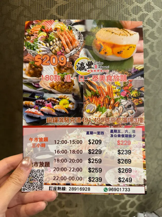 忙到抖唔到氣嘅日子終於過去,老公想瘋狂食放題,我又心思思想食大閘蟹🦀!上網搵吓銅鑼灣有冇兩全其美嘅地方,真係比我搵到寶藏——「瀛豐放題料理專門店」!喺京都廣場3樓,勁方便👏呢度主打「至尊大閘蟹放題」,除咗主角大閘蟹,刺身、壽司、涼拌、小菜多到眼花👀,連甜品都係誠意之作,款款好味到停唔到口!🔅三文魚腩刺身盤🍣厚切新鮮,魚油豐盈,入口嫩滑!仲有醬油吞拿魚、油甘魚、八爪魚、螺片同珍寶赤蝦,全部都鮮味爆燈💥 🔅極品海鮮拼盤鮑魚爽彈鮮甜仲帶啲酒香,而長腳蟹就鮮甜多汁!凍鮮隻隻都好爽口 ,仲翡翠螺鮮甜有咬口🌟 🔅海膽帶子海膽嘅濃郁同帶子嘅厚鮮真係perfect match!啖啖海洋滋味🌊 🔅大閘蟹🦀隻隻都爆膏!蟹膏甘香濃郁,蟹肉好鮮甜,真係秋天最幸福嘅味道😍 🔅 天婦羅炸得酥脆唔油膩,🍤蝦同蟹柳都 keep 到肉汁! 🌿 泰式鳳爪同生菜包酸辣開胃,一樣出色!最後,甜品仲有㚈款啫喱、布甸、雪糕、雪條!真係成餐都大滿足,肚仔同心靈都飽晒🤣!…查看更多