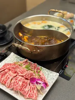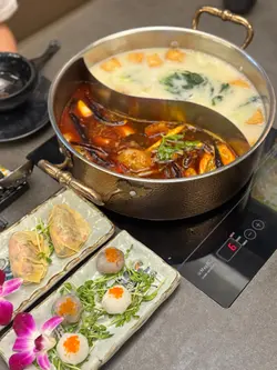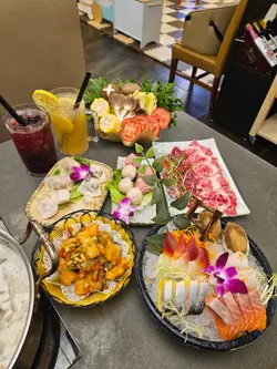 餐廳分為兩層、上層有8間特式VIP房,房內均有獨立冷氣及電視機,上層亦有獨立洗手間。而地下層就有多個闊寬卡座位,而且有個比較大的兒童小天地,供小朋友放電,內裡有多款煮飯仔、兒童鋼琴及公仔等等。餐廳歡迎客人帶貓貓狗狗來聚餐,但必須致電預訂VIP房間啦!🌸醬料 $18有9款醬料及配料,特別推介沙茶醬,味道適中帶點辣,非常惹味。🌸特瀛刺身(希靈魚、魷魚、北寄貝、三文魚) $168🌟🌟🌟🌟🌟各款刺身都非常新鮮,而且非常爽口鮮甜、三文魚非常肥美及厚切、爽口魷魚包裹脆卜卜蟹籽、希靈魚帶點鮮甜而且也有卜卜脆口感。🌸冰鎮鮑魚2隻 $176🌟🌟🌟🌟🌟新鮮厚肉鮑魚、冰鎮後勁爽口彈牙。為慶祝瀛鍋生日,每位免費贈送一隻。🌸鮮味卜卜蜆鍋 $288🌟🌟🌟🌟🌟非常鮮甜大大隻卜卜蜆,份量十足,配料粉絲、鮮甜粟米、鮮甜白蘿蔔、湯底鮮甜濃郁。🌸椒鹽三文魚骨腩 $78🌟🌟🌟🌟🌟炸到外表脆卜卜、內裡三文魚骨腩帶點Juicy,椒鹽味道非常惹味。🌸手切鴛鴦牛(手切牛肉、安格斯牛) $368🌟🌟🌟🌟🌟🍀手切牛肉—鮮嫩可口,牛味濃郁🍀安格斯牛—嫩滑而有點筋位🌸手打四寶丸(牛丸、豬肉丸、蝦丸、墨魚丸) $78🌟🌟🌟🌟每款都比較彈牙,特別最愛黑魚丸,因帶有墨魚咬口。🌸鮮雲吞拼韮菜餃(8隻)$58🌟🌟🌟🌟🌟鮮雲吞煮好像金魚一樣,韮菜餃味道濃郁🌸雙拼$40火鍋配料 $45🌟🌟🌟🌟(金沙流心丸、魚肉豆腐丸)濃郁爆餡金沙流心丸、彈牙魚肉豆腐丸🌸稻庭烏冬(兩個) $30🌟🌟🌟🌟🌟爽口稻庭烏冬,而且朔晒湯汁配搭埋沙茶醬非常惹味。🌸洛神花大大杯 $38🌟🌟🌟🌟🌟酸酸甜甜洛神花茶,既可以消暑又可以解油膩。🌸大大杯手打檸檬綠茶 $38🌟🌟🌟🌟🌟濃郁蜜糖味道,手打檸檬綠茶飲完又潤喉。…查看更多