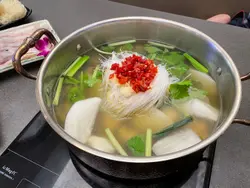 餐廳分為兩層、上層有8間特式VIP房,房內均有獨立冷氣及電視機,上層亦有獨立洗手間。而地下層就有多個闊寬卡座位,而且有個比較大的兒童小天地,供小朋友放電,內裡有多款煮飯仔、兒童鋼琴及公仔等等。餐廳歡迎客人帶貓貓狗狗來聚餐,但必須致電預訂VIP房間啦!🌸醬料 $18有9款醬料及配料,特別推介沙茶醬,味道適中帶點辣,非常惹味。🌸特瀛刺身(希靈魚、魷魚、北寄貝、三文魚) $168🌟🌟🌟🌟🌟各款刺身都非常新鮮,而且非常爽口鮮甜、三文魚非常肥美及厚切、爽口魷魚包裹脆卜卜蟹籽、希靈魚帶點鮮甜而且也有卜卜脆口感。🌸冰鎮鮑魚2隻 $176🌟🌟🌟🌟🌟新鮮厚肉鮑魚、冰鎮後勁爽口彈牙。為慶祝瀛鍋生日,每位免費贈送一隻。🌸鮮味卜卜蜆鍋 $288🌟🌟🌟🌟🌟非常鮮甜大大隻卜卜蜆,份量十足,配料粉絲、鮮甜粟米、鮮甜白蘿蔔、湯底鮮甜濃郁。🌸椒鹽三文魚骨腩 $78🌟🌟🌟🌟🌟炸到外表脆卜卜、內裡三文魚骨腩帶點Juicy,椒鹽味道非常惹味。🌸手切鴛鴦牛(手切牛肉、安格斯牛) $368🌟🌟🌟🌟🌟🍀手切牛肉—鮮嫩可口,牛味濃郁🍀安格斯牛—嫩滑而有點筋位🌸手打四寶丸(牛丸、豬肉丸、蝦丸、墨魚丸) $78🌟🌟🌟🌟每款都比較彈牙,特別最愛黑魚丸,因帶有墨魚咬口。🌸鮮雲吞拼韮菜餃(8隻)$58🌟🌟🌟🌟🌟鮮雲吞煮好像金魚一樣,韮菜餃味道濃郁🌸雙拼$40火鍋配料 $45🌟🌟🌟🌟(金沙流心丸、魚肉豆腐丸)濃郁爆餡金沙流心丸、彈牙魚肉豆腐丸🌸稻庭烏冬(兩個) $30🌟🌟🌟🌟🌟爽口稻庭烏冬,而且朔晒湯汁配搭埋沙茶醬非常惹味。🌸洛神花大大杯 $38🌟🌟🌟🌟🌟酸酸甜甜洛神花茶,既可以消暑又可以解油膩。🌸大大杯手打檸檬綠茶 $38🌟🌟🌟🌟🌟濃郁蜜糖味道,手打檸檬綠茶飲完又潤喉。…查看更多