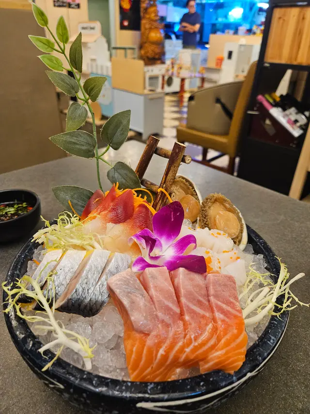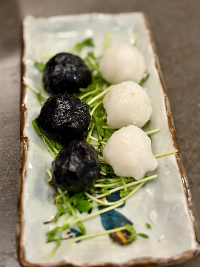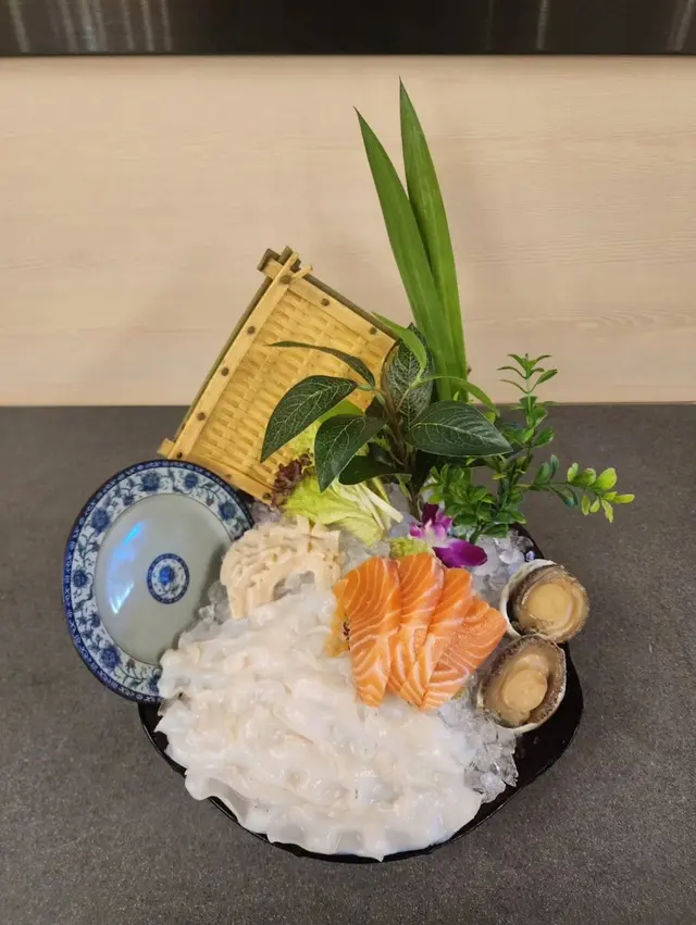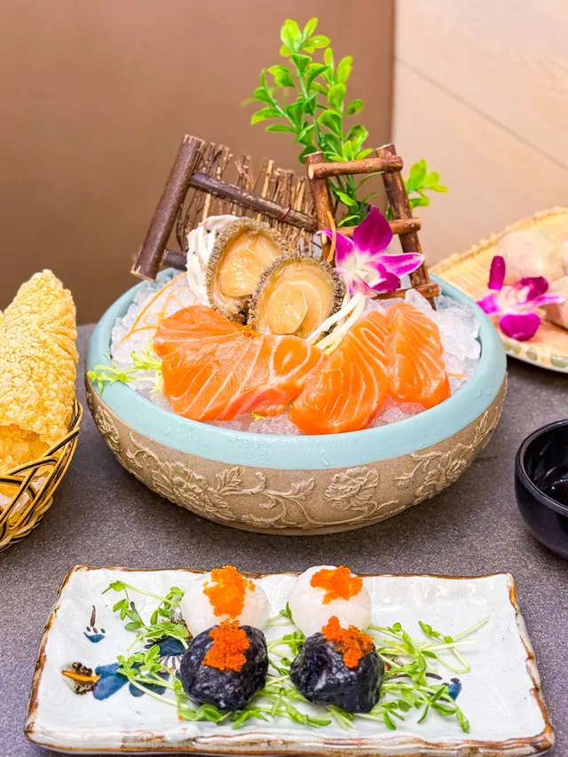 特鮮刺身(希靈魚、魷魚、北寄貝、三文魚) 每款刺身都新鮮,口感滑嫩且鮮美,三文魚切得厚實,油脂豐富,魷魚包裹著脆脆的蟹籽,希靈魚鮮甜令人回味。