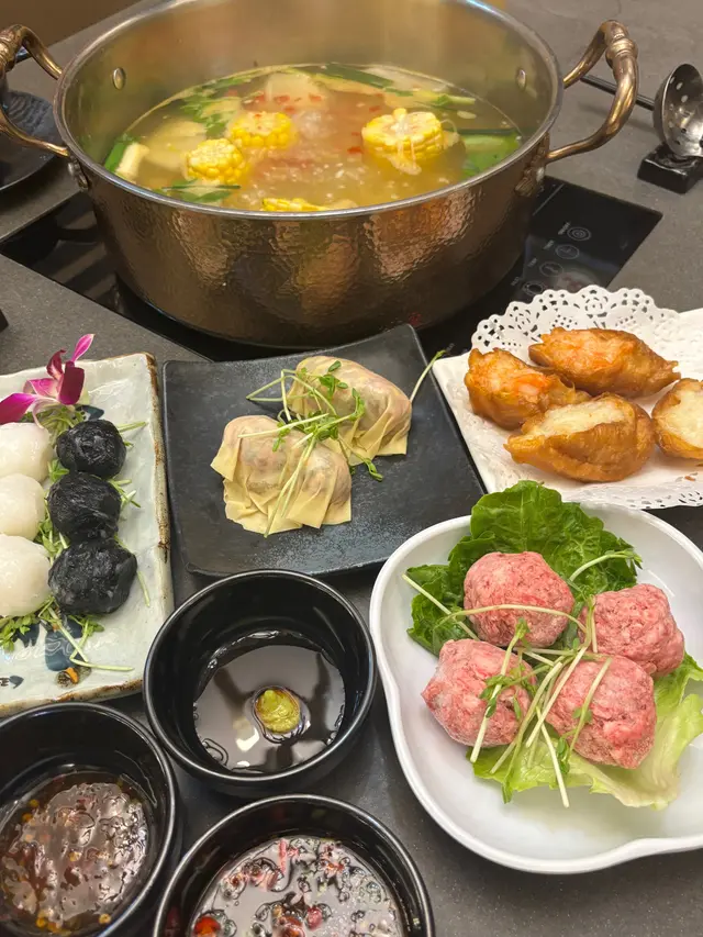最近朋友搬到了九龍城,特意帶我來這家火鍋店品嚐美食。這間餐廳共分為上下兩層,二樓擁有8間獨特的VIP包房,每個房間都配備了舒適的空調和大屏幕電視,讓客人能夠享受更為愉悅的用餐體驗。獨立的包房設計也能保持聚會的私密性,無論是家庭聚餐還是好友聚會,都是極佳的選擇。一樓還設有一個可愛的小型遊樂區,非常適合帶著小朋友來。大人們可以悠閒地享受火鍋,而小孩則可以在遊樂區裡快樂玩耍。值得一提的是,這裡也歡迎客人攜帶主子前來用餐,但切記要提前電話預約VIP包房。在火鍋方面,這裡提供多達9種醬料選擇,其中我特別推薦沙茶醬,味道恰到好處,微微帶點辣味,讓人食慾大開。特色推薦: