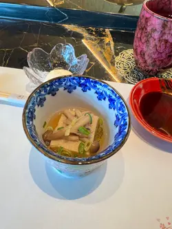 前菜,當日前菜係高野豆腐配上菇,味道清甜。
