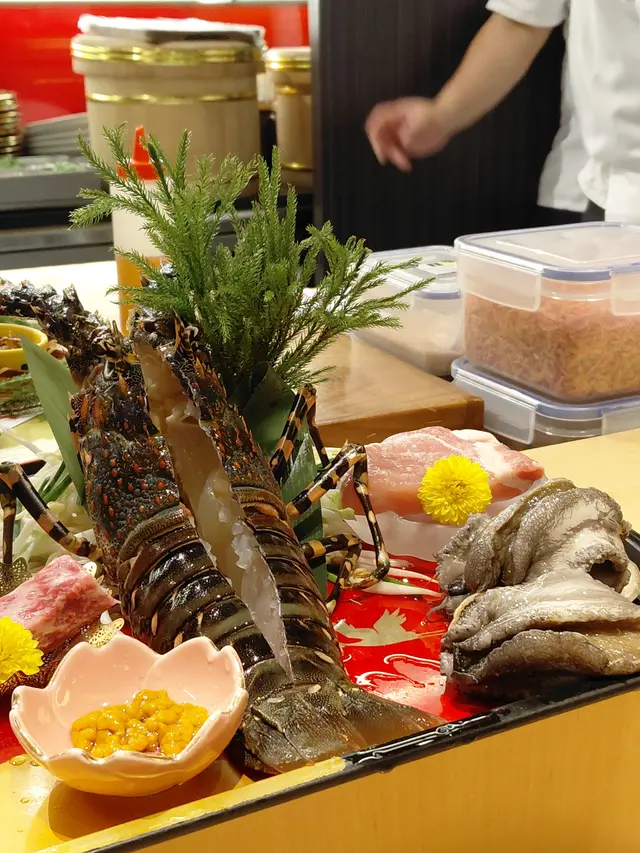 今晚嚟到銅鑼灣 Sugar+ 26樓嘅「瀧宴」食飯,一入去就被個View吸引住,環境又 Grand 又舒服,絕對係慶祝或者同另一半撐枱腳嘅好地方。我哋叫咗個 $980 精選套餐,有齊刺身、龍蝦、和牛,性價比極高!🍱 前菜三點盛+刺身拼盤一開場個擺盤已經贏晒!前菜三小碟精緻到唔捨得食:薯仔沙律綿密開胃,水雲醋物酸酸地滑嘟嘟好清爽,仲有個蟹肉漬物鮮味十足。刺身部分非常新鮮,鮪魚色澤紅潤,油甘魚同鯛魚切得厚身,油脂豐富,入口有魚油香,唔係一般貨色可比。最驚喜係個海膽杯,海膽鮮甜唔腥,下面鋪滿晶瑩剔透嘅白身魚刺身同爆汁魚子,一啖食落去口感層次勁豐富,鮮到飛起!🥚 茶碗蒸+清酒煮蜆湯茶碗蒸滑到好似布丁咁,上面鋪咗蟹肉同菇,每一啖都充滿高湯鮮甜味。蜆湯好足料,蜆肉大隻飽滿,海帶湯底清甜暖胃,飲完個人舒服晒,準備迎接主菜!🐟 Hamachi Fish Kala (燒魚鮫)呢個油甘魚鮫燒得好靚!魚皮燒到微焦香脆,入面魚肉依然嫩滑多汁,魚油喺口入面爆發,配埋少少檸檬汁同但蘿蔔,解膩又提鮮,送酒一流。🦞 鐵板龍蝦+鮑魚重頭戲嚟啦!龍蝦肉爽口彈牙,鮮甜味鎖晒喺肉入面,唔洗點醬都好夠味。鮑魚亦係亮點,煮得非常腍身,完全唔會韌,鮮味Double up,每一啖都係享受。🥩 宮崎和牛薄燒呢個宮崎和牛真係冇得輸!我揀咗五成熟,粉嫩嘅肉色靚到暈。油脂分佈均勻,入口即溶,牛味濃郁。師傅好有心機咁捲住炸蒜片同蔥花,再配埋旁邊嘅洋蔥一齊食,口感豐富之餘又唔會覺得膩,每一啖都係幸福感!🍚 煙肉蒜香炒飯+炒野菜食到尾聲仲有個炒飯,師傅手勢好勢利,炒到飯粒分明,鑊氣十足,加埋太陽蛋拌勻食,蛋液包裹住飯粒,香到停唔到口!炒野菜清清地,有齊芽菜、韭菜花等,爽脆解膩。🍵 甜品最後以抹茶豆腐布丁配紅豆作結。抹茶味香濃回甘,豆腐布丁滑溜,紅豆蓉甜度啱啱好,完美句號。成餐飯無論係環境定食物質素都好高分,特別係個view真係加晒分。$980 可以食到咁多款高質食材,仲要係專人服侍嘅鐵板燒,真心覺得抵食。推薦大家如果有慶祝活動,一定要嚟試吓!…Read More