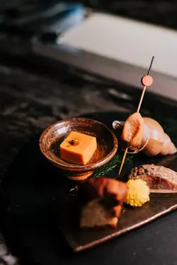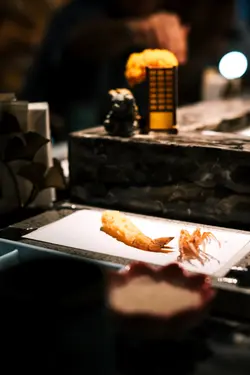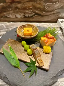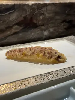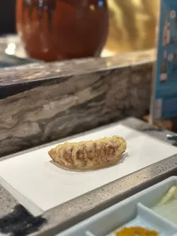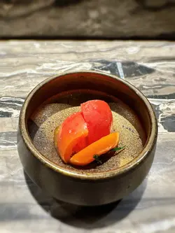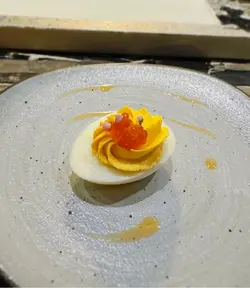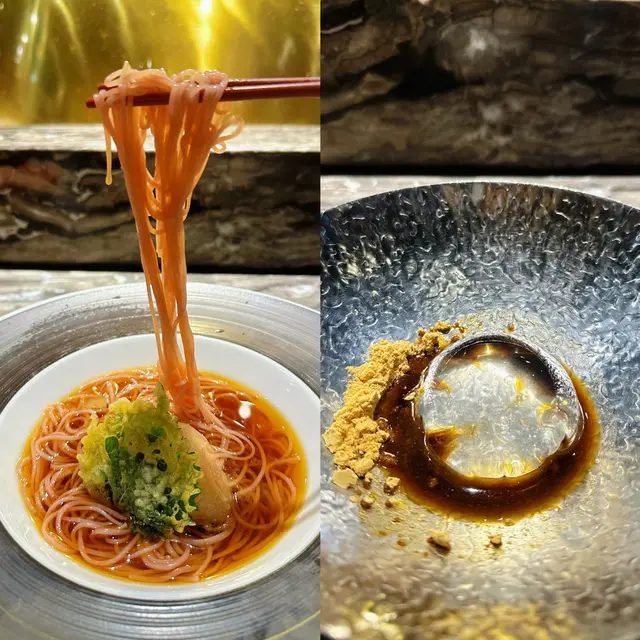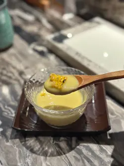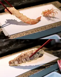 今晚同班朋友去咗中環食天婦羅Omakase,壁畫有條超級霸氣嘅龍 🐲 店內環境唔錯,師傅會喺面前即場炸天婦羅~先付: 😈魔鬼蛋配三文魚籽 🥚師傅堅持要一啖過食!蛋黃嘅綿密撞上魚籽嘅爆漿感,正! 🍮 四式前菜:海膽豆腐配Wasabi自家製醬汁白梅貝超彈牙翡翠銀杏粒粒清新感自家製玉子燒好似蛋糕咁鬆化!🐟 刺身三款:秋刀魚配薑蔥蓉,當造秋刀魚油脂甘香,點少少豉油就夠晒味 刺身三款:八爪魚金木鯛用Wasabi秋刀魚配薑蔥蓉,醃豉油一齊食,以突出鮮味配搭蓮霧帶出清新感覺!🌽 轉折點: 粟米凍湯清一清 用北海道粟米打成凍湯,粟米味香濃,入口質感幼滑好似食緊忌廉咁!準備迎接天婦羅環節 天婦羅4重奏:🦐 車海老 👉🏻蝦身點白鹽 ,保持到蝦肉爽口👉🏻蝦頭點咖喱鹽超惹味 ✨ 瀨尿蝦天婦羅 炸皮超級薄!食完都唔會覺得好油膩蝦肉爽彈到難以置信,估唔到同咖喱鹽咁夾!✨目光魚點白鹽魚味濃郁 肉質幼滑✨帆立貝配三文魚籽及Wasabi師傅推薦食法:一口氣發放入口🍅煮物:岡山縣水果蕃茄甜度高配岩鹽 平均甜度🍖主菜:慢煮和牛肩肉師傅特別挑選牛肩脂肪均勻配上溫泉蛋 ,5塊薄切慢煮和牛肩肉,配搭自家醬汁🧊主食:梅冰紫蘇葉素麵採用「梅中之王」嘅南高梅製作成梅冰🧊 配搭紫蘇葉及素麵!酸酸甜甜好開胃口感好fresh 🍠白蘭地鹿兒島安納芋慢炸1小時嘅鹿兒島蕃薯🍠 仲可以連皮食!外皮超級酥脆,蕃薯超級甜!配搭白蘭地及白糖~完美句點:🍮 水信玄餅 黃豆粉帶出和風感,幸福感覺!!…查看更多