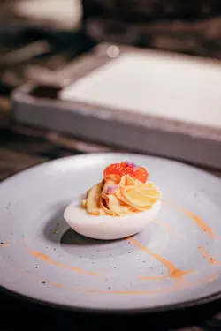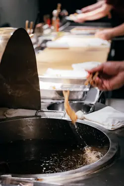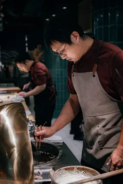 最近去咗中環威靈頓街嘅 TEMPURA TAKI 食晚餐,主打天婦羅 Omakase。坐喺吧枱位睇住師傅即場處理海鮮、落粉、即炸即上,成個過程都幾有氣氛。佢哋用專業嘅日本天婦羅露炸爐,炸出嚟啲蝦、瀨尿蝦、目光魚同穴子都好新鮮,炸皮薄脆又唔油。仲有刺身區,師傅即席切刺身,象拔蚌、金目鯛同秋刀魚都處理得幾靚。.開頭先上魔鬼蛋,面層係蛋黃慕絲配三文魚籽,入面仲有蟹肉同蝦頭油,味道幾有層次。之後四小碟前菜都幾精緻,日本醋漬水雲、海膽豆腐配昆布啫喱、炸銀杏同自家製玉子燒,清清地又唔會太飽。主菜係慢煮和牛肩,肉質嫩,味道平衡。主食升級咗佢哋招牌嘅濃雞湯拉麵,用整隻雞熬出嚟,湯頭又香又厚,食到尾都仲覺得暖笠笠。.最有印象係最後個甜品 — 白蘭地鹿兒島安納芋。由入座見佢哋開始慢炸,到尾聲先上枱,食落外層輕脆、入面軟糯,白蘭地香氣同甜味好夾。甜品仲有自家製焦糖燉蛋,味道唔會太甜。.除咗套餐,其實仲可以加 $280 任飲五款清酒,限時兩個鐘。對鍾意天婦羅同清酒嘅朋友嚟講,呢個組合算幾抵玩。.Taki 瀧 💲880(折後)✿ 先付.✿ 四式前菜.✿ 刺身三款.✿ 天婦羅四款.✿ 煮物.✿ 主菜.✿ 主食 (升級招牌濃雞湯拉麵 +$68).✿ 白蘭地鹿兒島安納芋.✿ 甜品.…查看更多