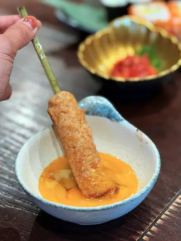 走入居酒屋,好似瞬間穿越去日本小巷。木質裝潢及暖黃燈光,帶出一種靜謐而親切嘅感覺,係一種慢活氛圍,令你自然又放鬆😌.🇯🇵Weekend Brunch ($588/ 2人).【前菜】🥢鰻魚玉子燒蛋卷柔軟,甜味輕盈,鰻魚油香滲入其中,入口有種層次感😌🥢煙豬肝配胡麻醬汁煙燻香氣先行,胡麻醬帶出堅果甜香,口感細滑,完全冇腥味😌🥢芥末八爪魚爽脆又彈牙,芥末刺激感令味蕾瞬間醒神😌🥢螢光魷魚漬鹹香微酸,魷魚柔韌,係典型居酒屋小食嘅味道😌.【沙律】🥢野菜田園沙律蔬菜及牛油果新鮮,口感清脆,係整個套餐嘅淨化劑,令味覺重新歸零😌【卷物】🥢青瓜卷飯粒黏度適中,青瓜清爽,簡單卻解膩😌.🥢鉄火卷吞拿魚赤身鮮味突出,酸度平衡,經典之選😌【串燒】🥢明太子紫蘇葉豚肉卷紫蘇清香及豚肉油脂互相中和,明太子鹹香令味道更立體😌🥢自家製月見日本免治雞肉串雞肉扎實,炭火香氣明顯,配生蛋黃入口更滑潤,係全餐亮點之一😌【天婦羅】🥢海老炸漿輕薄,蝦肉彈牙😌.🥢舞茸菇菇香濃郁,炸後仍保留水分😌.🥢沙𩺬魚外脆內嫩,魚肉細膩😌.🥢番薯及南瓜甜味突出,炸漿輕盈,口感鬆軟😌【爐端燒】🥢鮮魚一夜乾魚肉實淨,鹹香濃縮且帶焦香😌.魷魚一夜乾🥢煙韌有嚼勁,唧少少檸檬汁令鮮味突出,配酒一流😌【炸物】🥢吉列廣島蠔蠔肉厚實,炸漿酥脆,入口乾身唔油膩😌🥢土佐豆腐外脆內嫩,配搭木魚碎及蔥花等,另有一番風味😌【主食】木魚湯烏冬湯底清甜帶木魚香,烏冬滑溜有嚼勁,為整個套餐劃上溫暖句號😌整個Weekend Brunch好似一場味覺旅程,由清爽前菜到炭火串燒,再到溫暖烏冬,層次分明。另餐廳唔止係食物,仲係一種週末慢活體驗,令你暫時忘記城市嘅急速節奏,享受鮮味與靜謐😌…查看更多