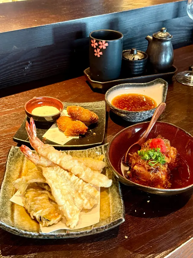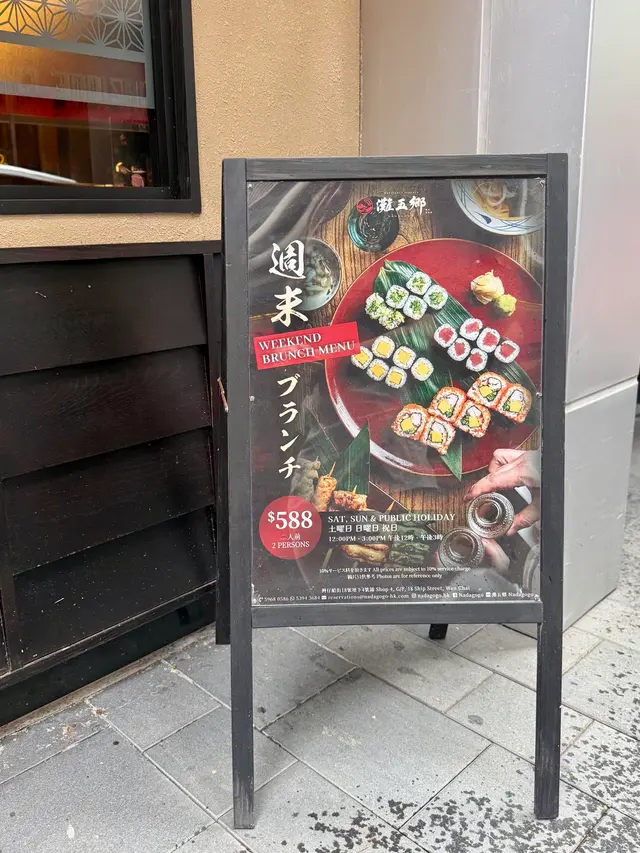 跟朋友到灣仔的灘五鄉食週末早午餐, 店鋪未開門, 已經排了人龍, 各年齡層都有, 認真犀利~ 到底這個餐有甚麼抵食呢? 前菜、沙律、卷物、天婦羅、揚物、爐端燒、主食, 都好飽! 若要飲品(兩小時無限飲), 則需每位另加HK$88暢飲日本蘋果汁及汽水; 或HK$228 暢飲酒精飲品. 我以氣泡酒作為這餐的第一杯飲品, 而朋友則選了清酒, 也是不錯的選擇. 前菜(六選四) - 鰻魚玉子燒、煙豬肝配胡麻鹽、螢光魷魚漬、辣鱈魚腸. 玉子燒弄得幾軟熟; 豬肝沾了特製醬汁, 幾夾, 但就比想像中硬. 螢光魷魚漬的味道幾濃, 好味! 以為辣鱈魚腸會是很大條, 不過這樣小口的也方便吃, 幾煙韌, 辣度適中. 沙律(二選一) – 田園沙律或自家製煙燻豚肉薯仔沙律 , 必選後者, 貪其較香口. 卷物(四選二) - 加州卷、青瓜卷, 每款三件, 正常發揮~ 串燒(七選二) – 每款兩串, 我們選了明太子紫蘇豚肉卷、自家製月見日本免治雞肉棒, 其實雞翼及雞膝軟骨都好吸引, 若果可以有四款選擇, 各一串也是不錯~ Anyway… 紫蘇葉獨特的味道與豚肉超夾, 很香口, 再配有少少明太子, 整體很讚. 而免治雞肉棒, 若果燒得金黃一點會較好, 不過現時都是滋味的, 因為有蛋黃及甜醬油拌著, 而且幾軟滑. 爐端燒(三選二) – 先來魷魚一夜乾, 幾香口, 易咬不黏牙, 無論沾不沾醬都好味. 另一款是照燒雞扒, 超讚! 雞皮薄脆, 雞肉彈牙有肉汁, 碟上的醬汁也可試試, 會吃出幾款不同口味.天婦羅拼盤是固定的, 不需選~ 有魚、蝦及蓮藕, 天婦羅漿不會過厚, 不錯~已經很飽了, 但還有揚物及主食~ 揚物(三選二) - 土佐豆腐、吉列廣島蠔. 土佐豆腐內嫩外脆, 略嫌外層有少少實, 吃豆腐時也吃淡醬汁, 幾舒服的. 廣島蠔不算大隻, 但一咬下, 內裏熱呼呼又嫩滑, 有驚喜~主食, 每人自選一款, 我與朋友必然點一個茶漬飯及一碗木魚湯烏冬. 茶漬飯有梅子味, 最喜歡是加入芥辣, 當然要立即吃, 否則放涼了飯粒會淋~ 簡簡單單的木魚湯烏冬, 湯頭清澈, 烏東又彈牙. 周末早午餐HK$588 兩位用, 難怪到埗當日座無虛席~ …查看更多