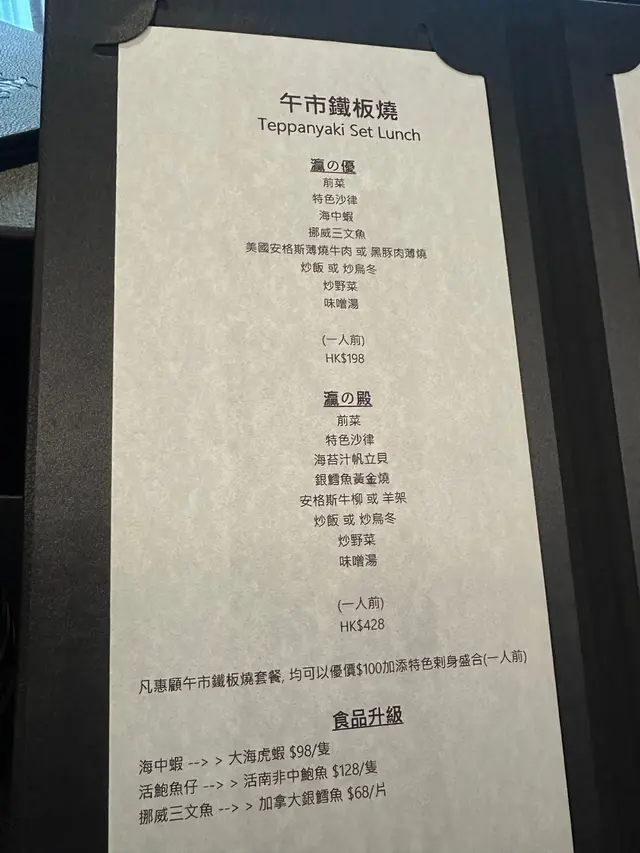 好耐無食到咁高質又抵食嘅鐵板燒,午市298唔洗加一就可以食到8樣精緻嘅美食,性價比高之餘,仲要樣樣都好好味😋成個套餐由前菜到甜品, 每一碟都好出色, 因為我好鍾意食鵝肝,所以另外加左$98要個法式鵝肝配紅酒啤梨,仲試埋佢魚籽鵝肝蒸蛋,十分鮮味。鵝肝燒到剛剛好,厚度適中又多汁,食完再食埋紅酒啤梨,完全唔會覺得膩。前菜特色沙律:連本身唔太鍾意食沙律既我都食哂成個。佢嘅菜好新鮮,甜酸度適中。味噌湯:難得唔會好咸,而係帶少少清甜,好飲。大海虎蝦:師傅精心處理過,分成幾粒燒,十分香口爽滑,調味濃郁得黎唔會蓋過蝦既鮮味。日本廣島蠔:十分肥美,外面煎得香脆,入面保持多汁。安格斯牛柳:火喉控制得幾好,做到粒粒牛柳粒都唔會過熟,口感唔錯。炒飯及炒野菜:炒得好獲氣,兩樣一齊食到停唔到口,好滿足!最後,估唔到甜品仲有驚喜,係超好味既牛奶麻糬,香滑得黎,加埋朱古力粉一齊食,真係回味無窮,勁想問老闆可唔可以再encore!總結黎講,好耐無打咁長既食評,但真心推介比大家,唔止環境好,食物好味,價錢又唔貴,老闆同師傅都親切友善,鍾意食鐵板燒既朋友記得唔好錯過! …查看更多