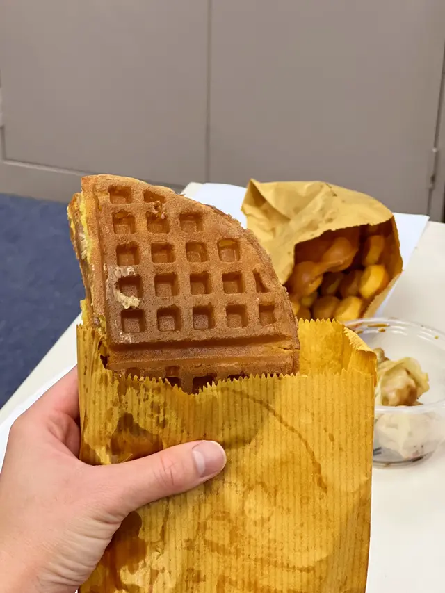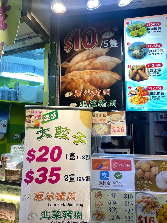 睇social media話呢間舖頭啲餃子好抵,一盒有12隻,只係20蚊,仲有兩款口味,韭菜餃同豬肉粟米餃,今日行過就試吓。佢入面擺左幾包大大包嘅急凍餃子,應該係入急凍餃子煎返熱來賣,不過20蚊有一打,想現包現煎咩佢一面煎一面賣,我啲餃子係岩岩喺鐵板上畢比我,好有溫度。佢櫃檯上面有辣椒油,醋等調味。不過我第一次食,又唔可以要求醬汁另上,我就無加喇啲餃子拎到返屋企已經無咁熱同脆,不過摺位頂部仲係脆嘅