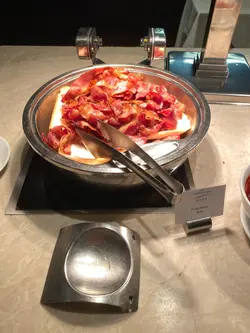 酒店的自助餐有中式、西式、日式、西班牙、印式菜,菜式丰富,應有盡有,最喜歡甜蝦和魷魚鬚刺身好鮮味好新鮮,還有香煎法國鹅肝加薄脆麵包也好好吃,好香 煎的火候啱啱好,吃足三小時,時間很充裕吃的很满足😍