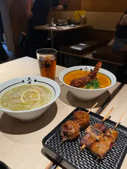 ✅雞肝多士/ 椒鹽蜆仔肉/ 麥粒味噌青瓜。三款都幾好食,特別蜆仔肉好送酒!雞肝醬就一般內臟味道,而青瓜要來解解膩都啱晒。-✅✅蜜瓜牛卷/ 蟹肉牡蠣。呢兩個由我上次食已經覺得好食同埋抵食👍🏻蜜瓜牛卷大大嚿,清甜嘅蜜瓜被燒得好香嘅牛肉包裹住,中和左油膩感。最重要係搽咗燒汁燒都唔會遮蓋咗牛同蜜瓜嘅味道,好balance🤗吉列牡蠣炸得香脆,入面肥美。最重要係面頭嘅蟹肉多到成堆山咁!-✅葡萄鴨卷/ 櫻花蝦豆腐。葡萄鴨卷都做到balance,不過佢就比較細粒,勝在唔會食到鴨臊味😬 櫻花蝦豆腐都好食,濃味嘅櫻花蝦包住淡味嘅豆腐,不失豆香🥸不過如果叫苦蝦湯麵就唔好叫呢個了。-❌蔥燒牛舌/ 玉子鰻魚。蔥燒牛舌得兩粒,中間用蔥夾住。當日嘅葱銷得比較燶…而牛舌亦食唔出肥美爽脆嘅感覺,仲要加$2… 玉子鰻魚係用玉子包住鰻魚,再拎去炸。可惜鰻魚冇乜存在感,主要食日本嘅甜蛋🥺-✅✅牡蠣白湯麵。呢個白湯因為有蠔嘅關係,所以味道偏腥。鍾意食蠔嘅人可能會覺得係鮮味😛都幾濃郁,不過質地唔會太厚👏🏻佢哋嘅冇乜彈性,所以比較適合呢個湯。飲落去每一啖都好重蠔味,特別好似啲蠔嘅內臟肥美嘅味道,好視乎個人口味,我就幾鍾意。不過送嘅份量比較少,只有兩隻中至大size嘅殼。-✅虎蝦濃湯麵。呢個蝦湯麵真係飽到傻😂好漏!但個蝦湯真係好濃稠好杰,煮到醬咁。所以配埋麵食會有啲一patpat。隻虎蝦炸得好脆,用大量櫻花蝦包裹住,蝦香double呀!入面的蝦肉都結實唔霉。不過個人對於呢個麵真係一般般。…查看更多